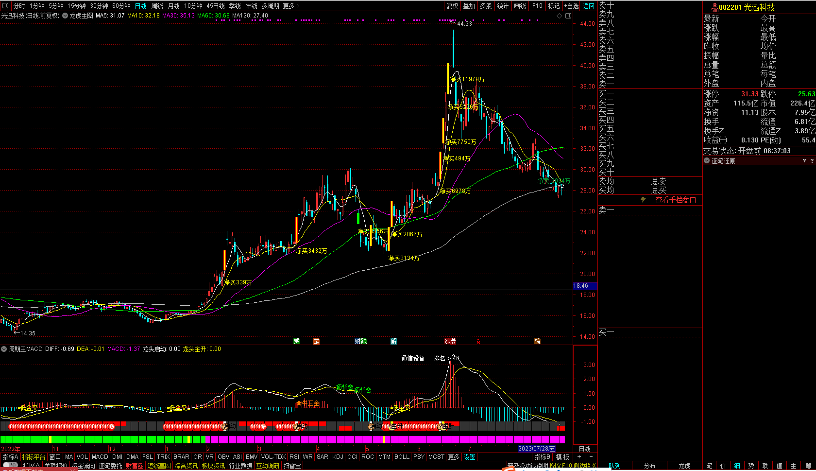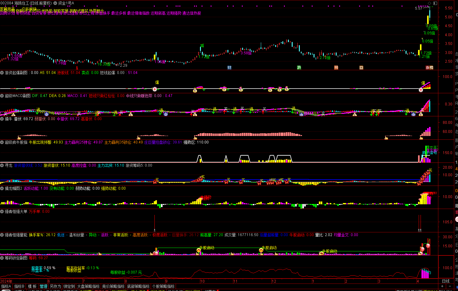 【新版双紫擒龙】副图选股指标强势起爆+双紫擒龙+动能二号+共振追涨 独创三紫一红选股