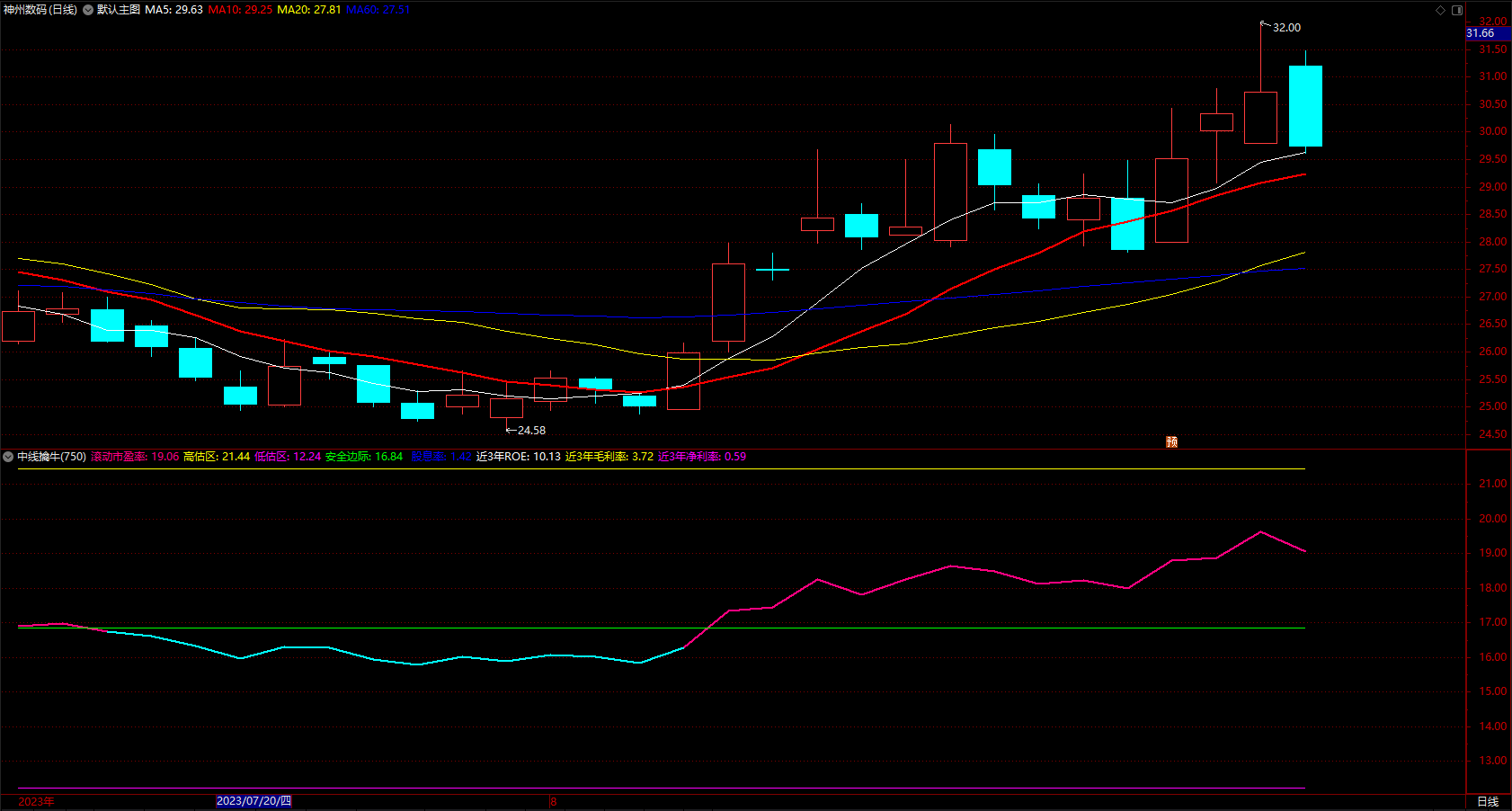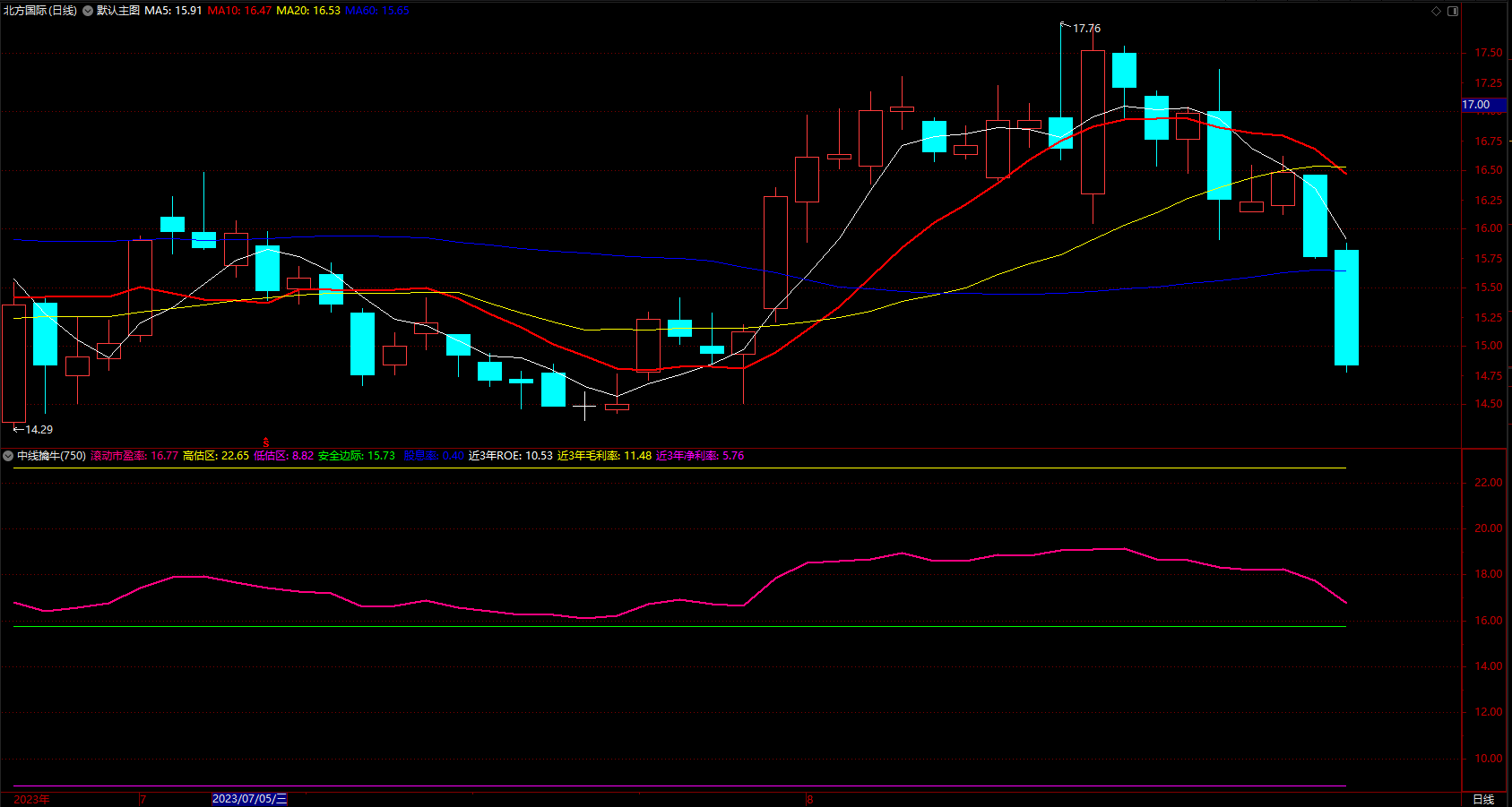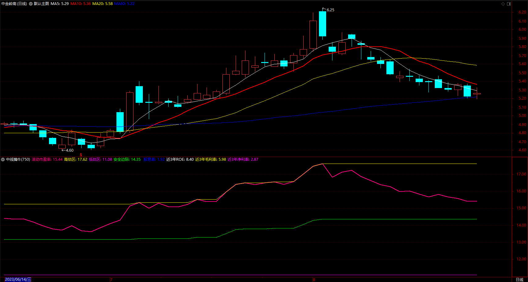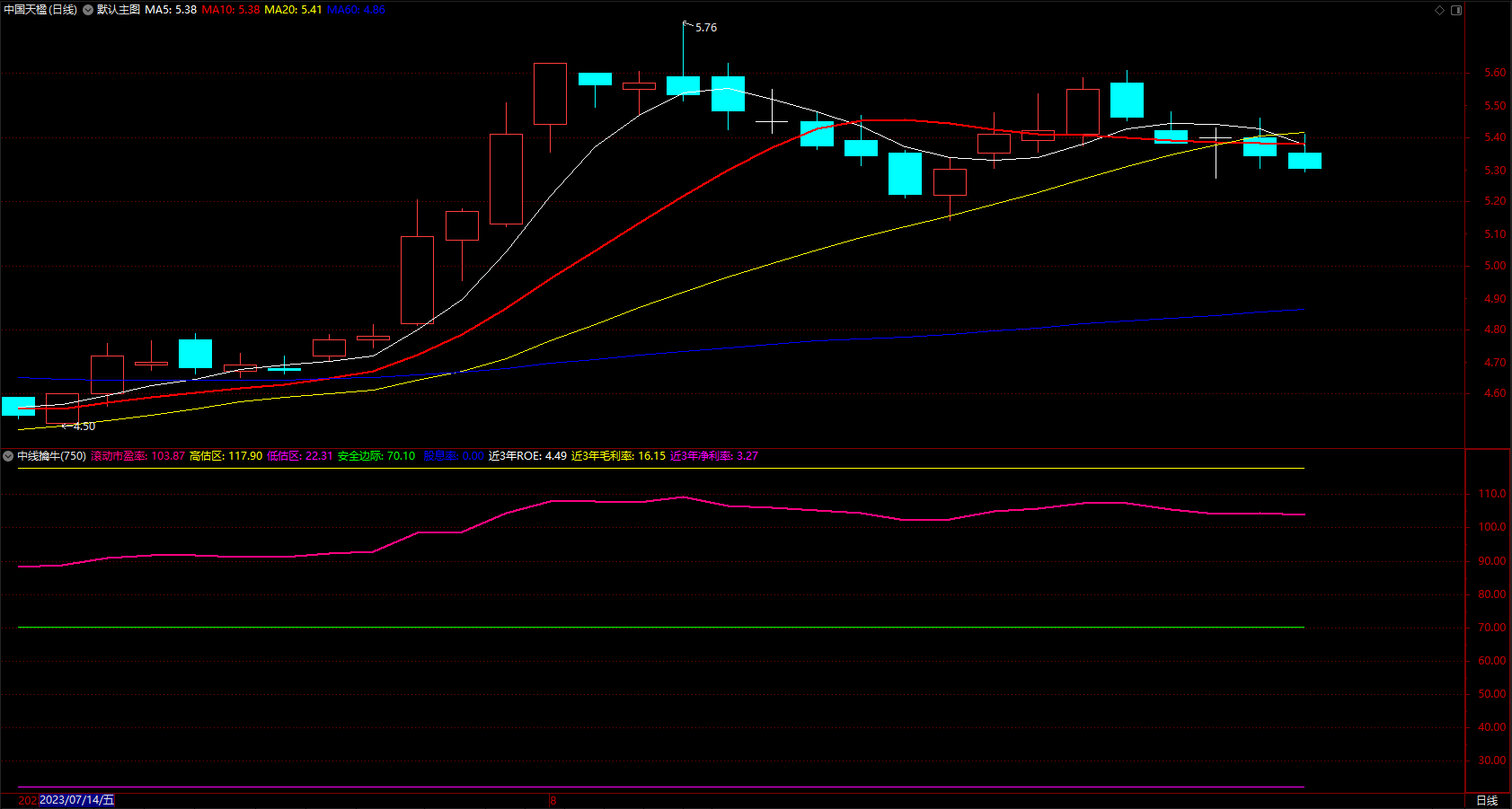 中线擒牛捉妖股专用指标 通达信市盈率顶底趋势线指标公式 副图 源码