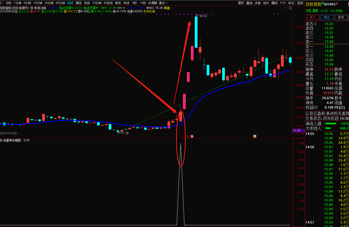 (通达信倍量单枪幅图指标(精准捕捉实朴检测、百胜智能主升浪,送选股指标))