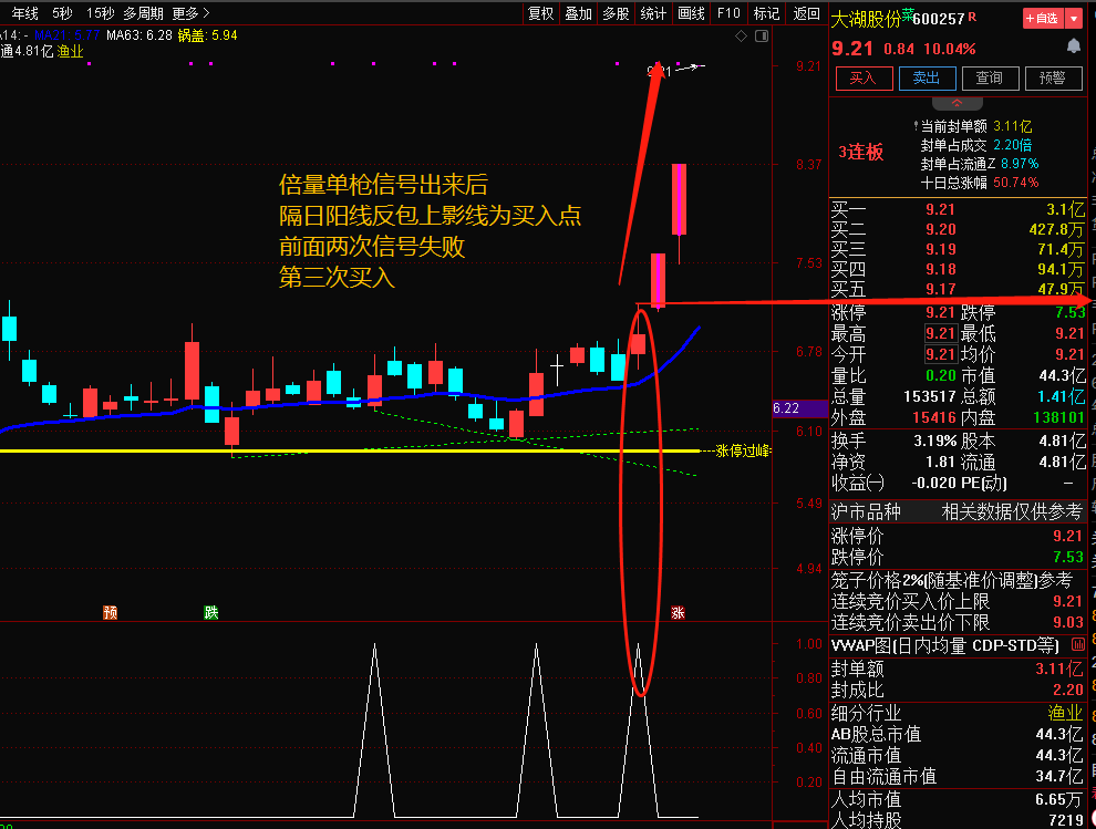 9月11日更新倍量单枪指标,附图如下: