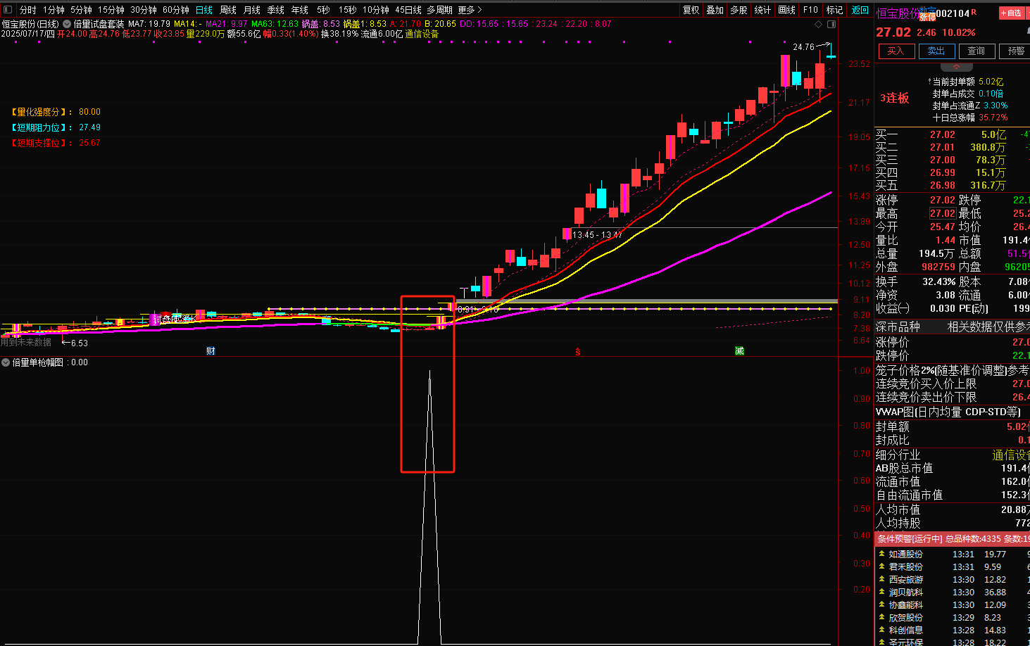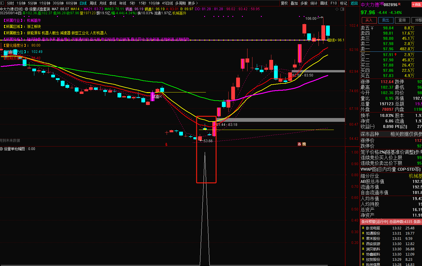 2025年8月14日更新倍量单枪指标,附图如下:
