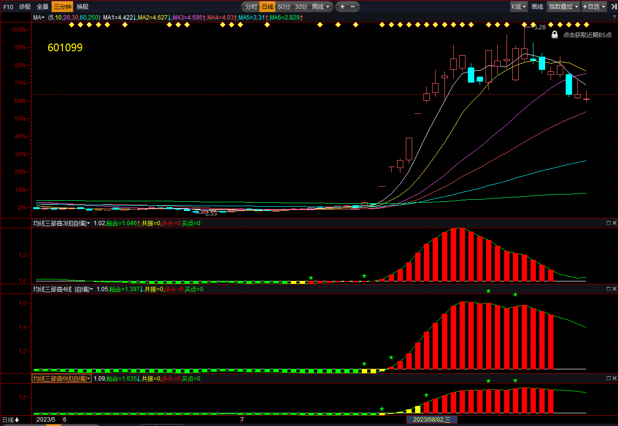 (【益盟操盘手】系列均线三部曲最新优化版副图指标公式,益盟版本使用,源码分享)
