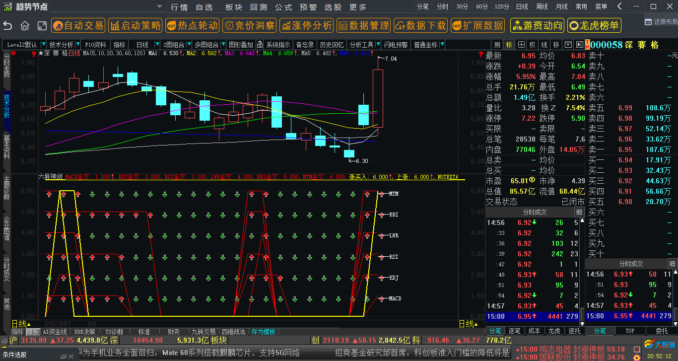 大智慧六脉神剑指标副图做参考!还要结合大盘,成交量看买卖点! 指标没有百分百!找出适合你自己的,不要有任何客观因素,慢慢的做出自己的风格!