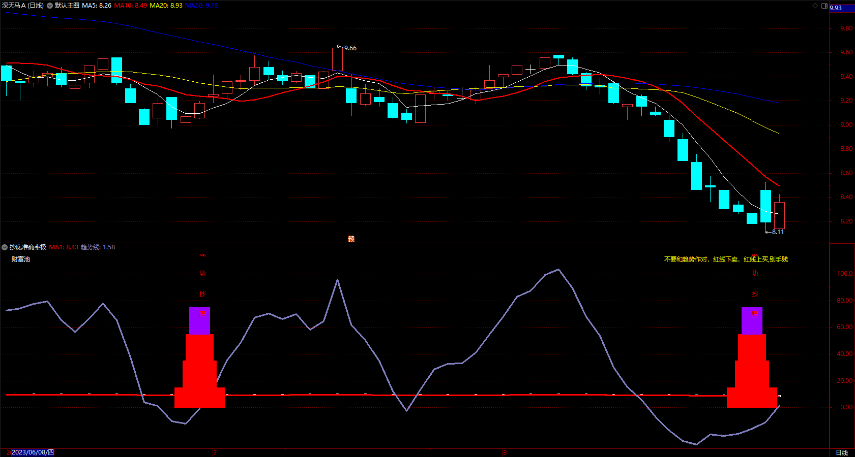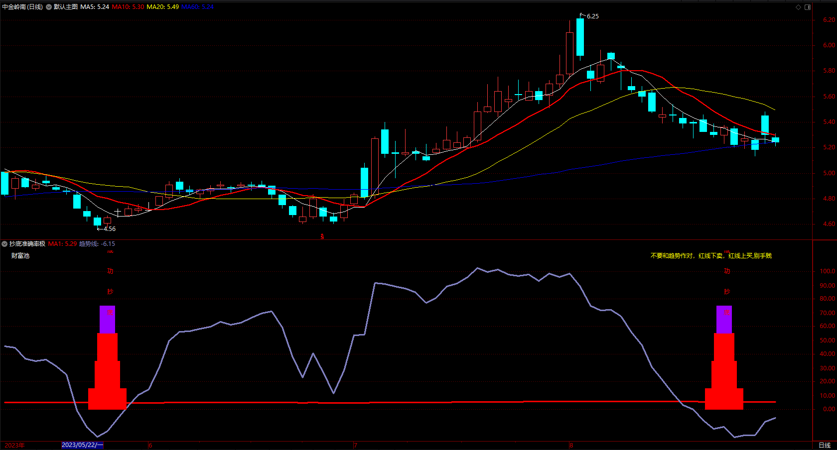 趋势线上穿红线后成功率高,不要和趋势作对,红线下卖,红线上买彩柱信号买入!