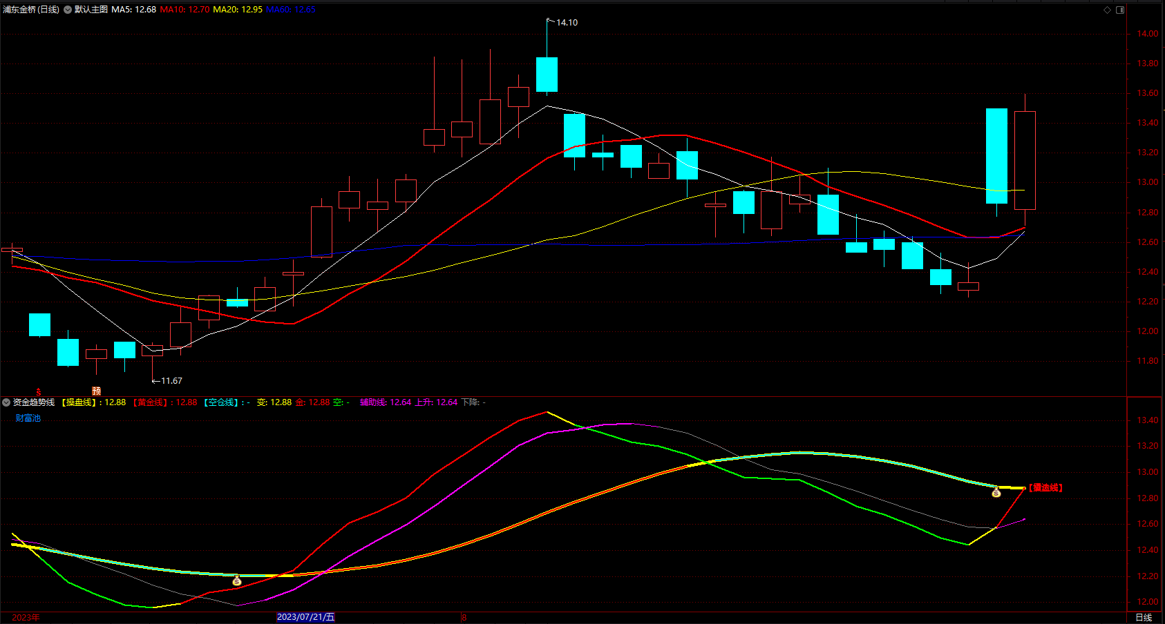 资金趋势线【胜率比较高】,如果资金线在趋势线上方,涨率更大!