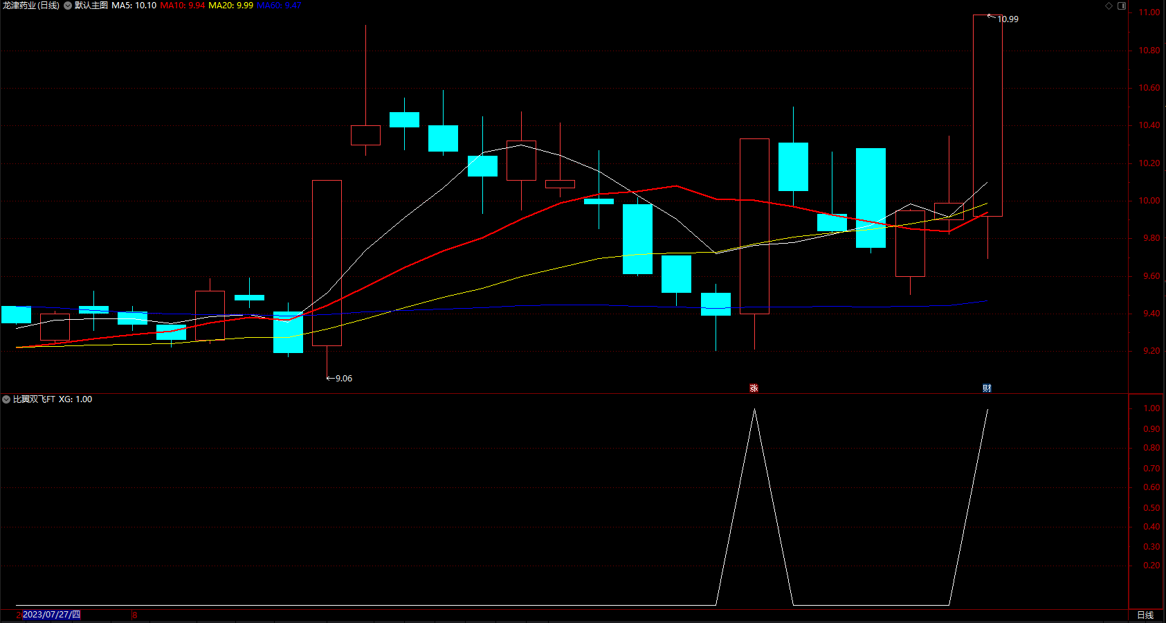 此指标在20天内出现最少2次涨停,前一个涨停和刚出来的涨停上下不要相差太多,2个涨停比较相对称。
