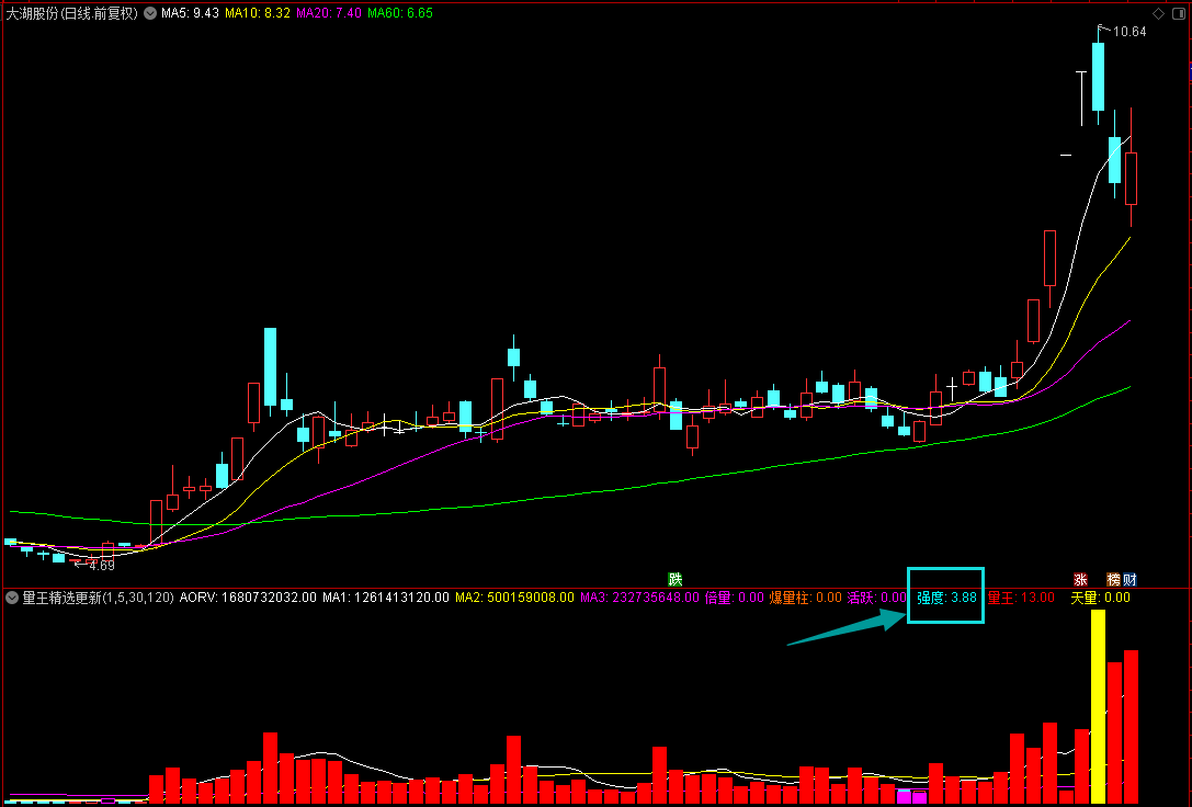 (【量王精选】通达信最新量王精选更新版副图指标,公式带强度数值显示!源码分享)