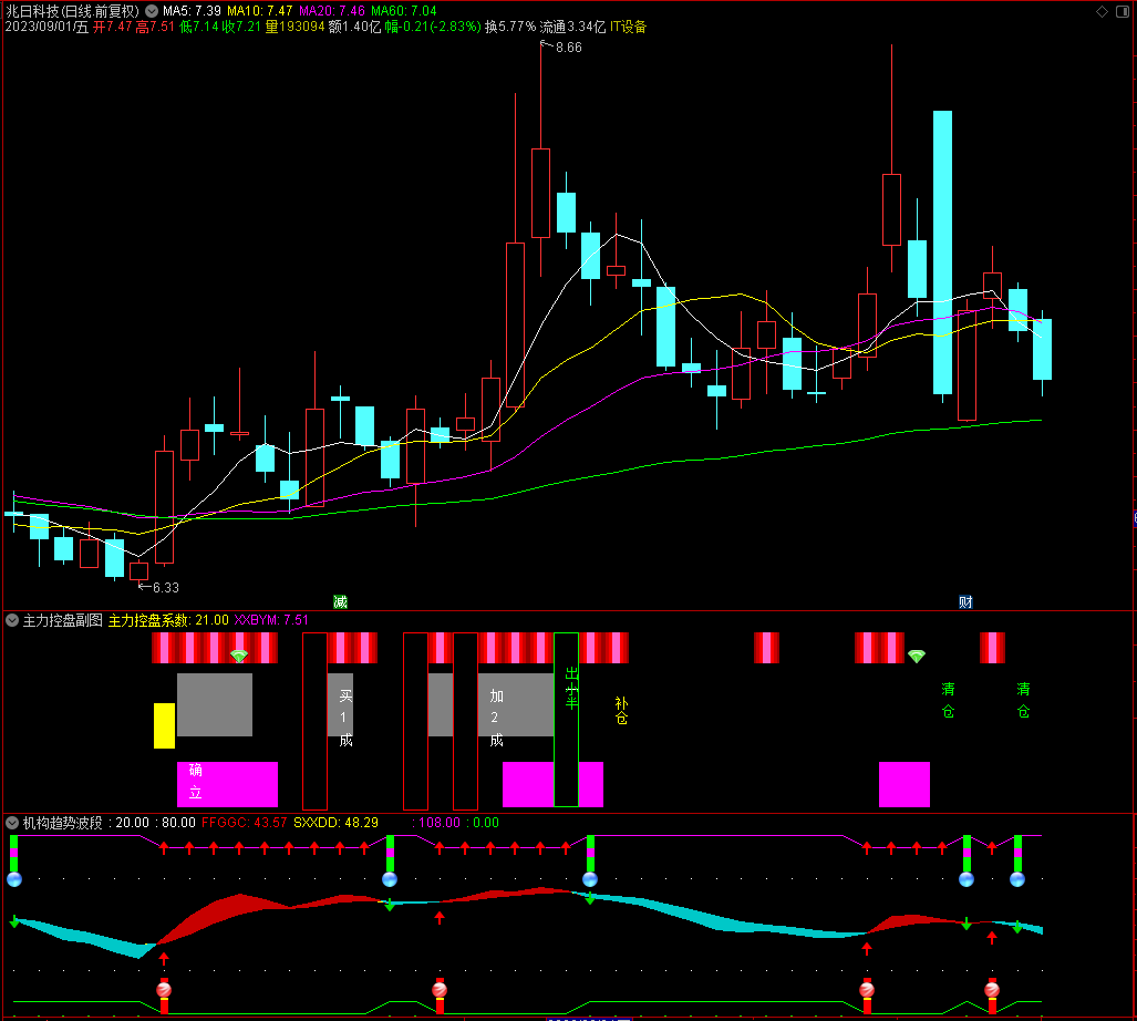 (【通达信】主力控盘副图+机构趋势波段副图指标,设置有多个信号!源码分享)