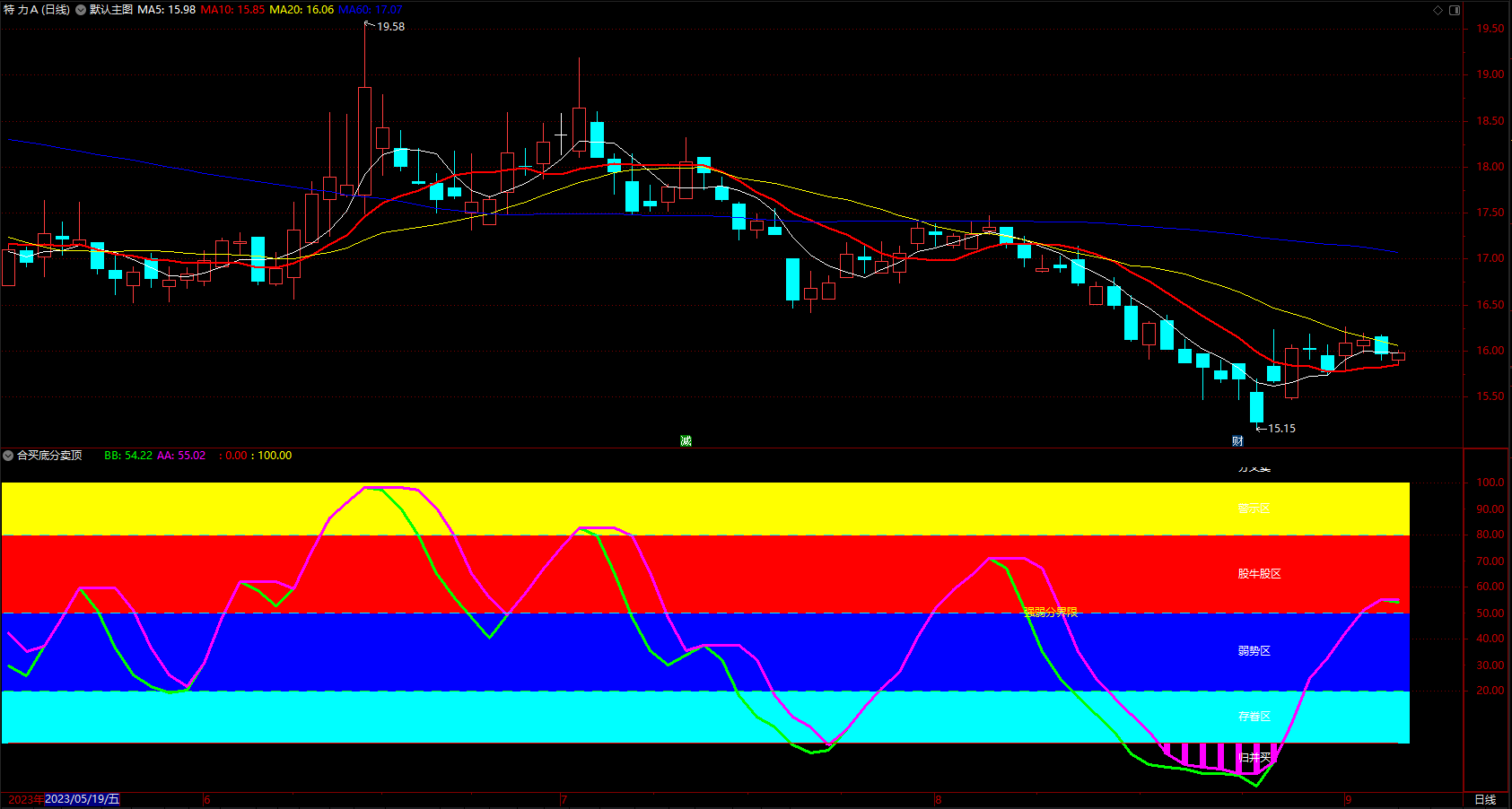 经典指标之一,双线合一向上买,双线分开向下卖,双线合一上穿0最佳抄底点,双线合一上行为多头,处在什么状态一目了然,双线合一上穿100超强,100以上双线分开,尤其下破100线要注意逃顶