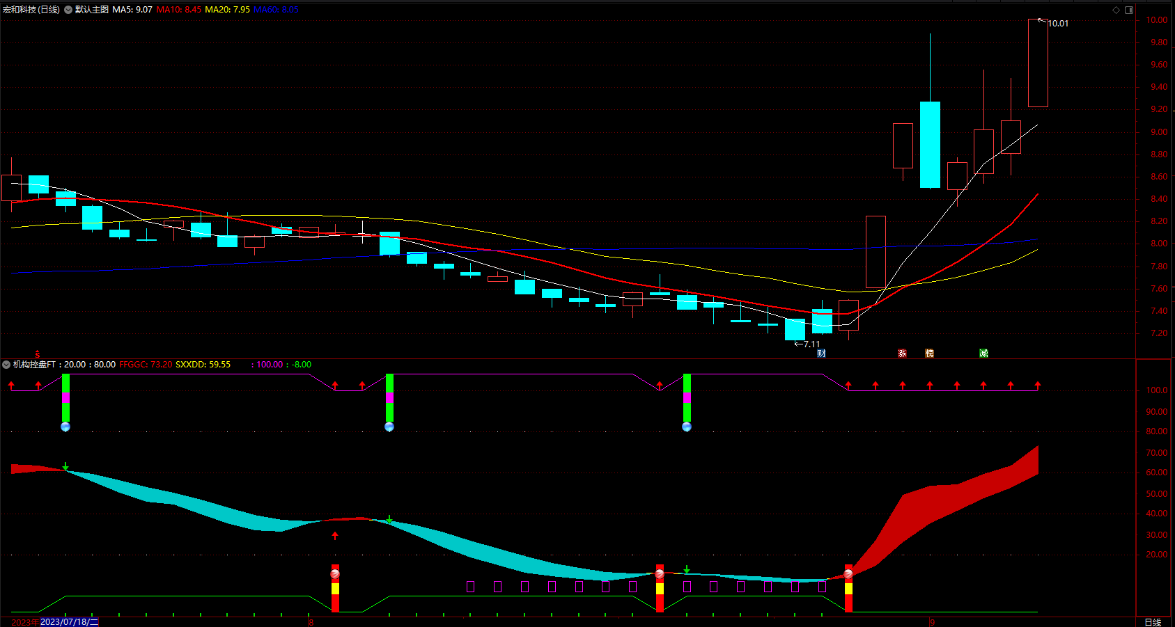 (机构趋势波段判断 通达信机构控盘度提示 指标公式 副图 无未来 源码)