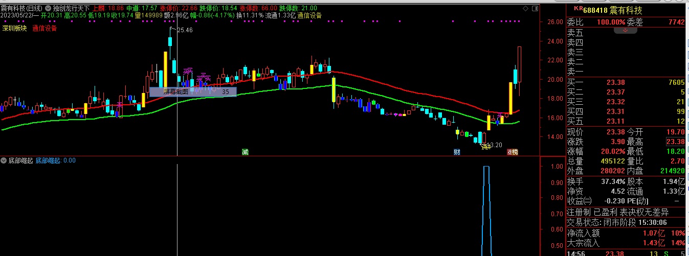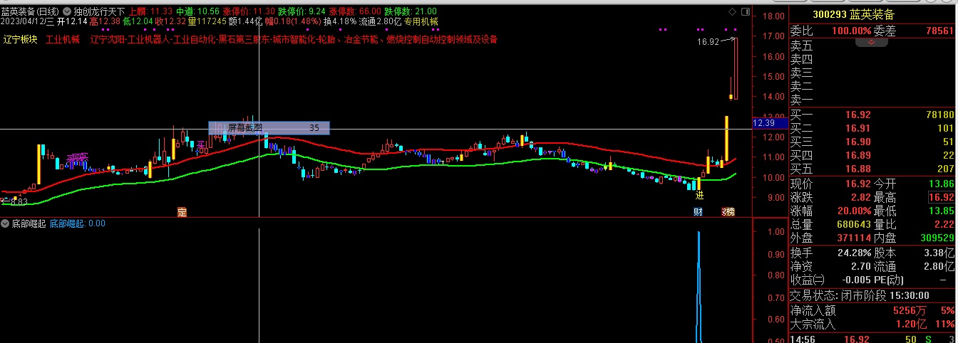 独创底部强势崛起指标,反转信号,主力资金强势,主力上涨之势。