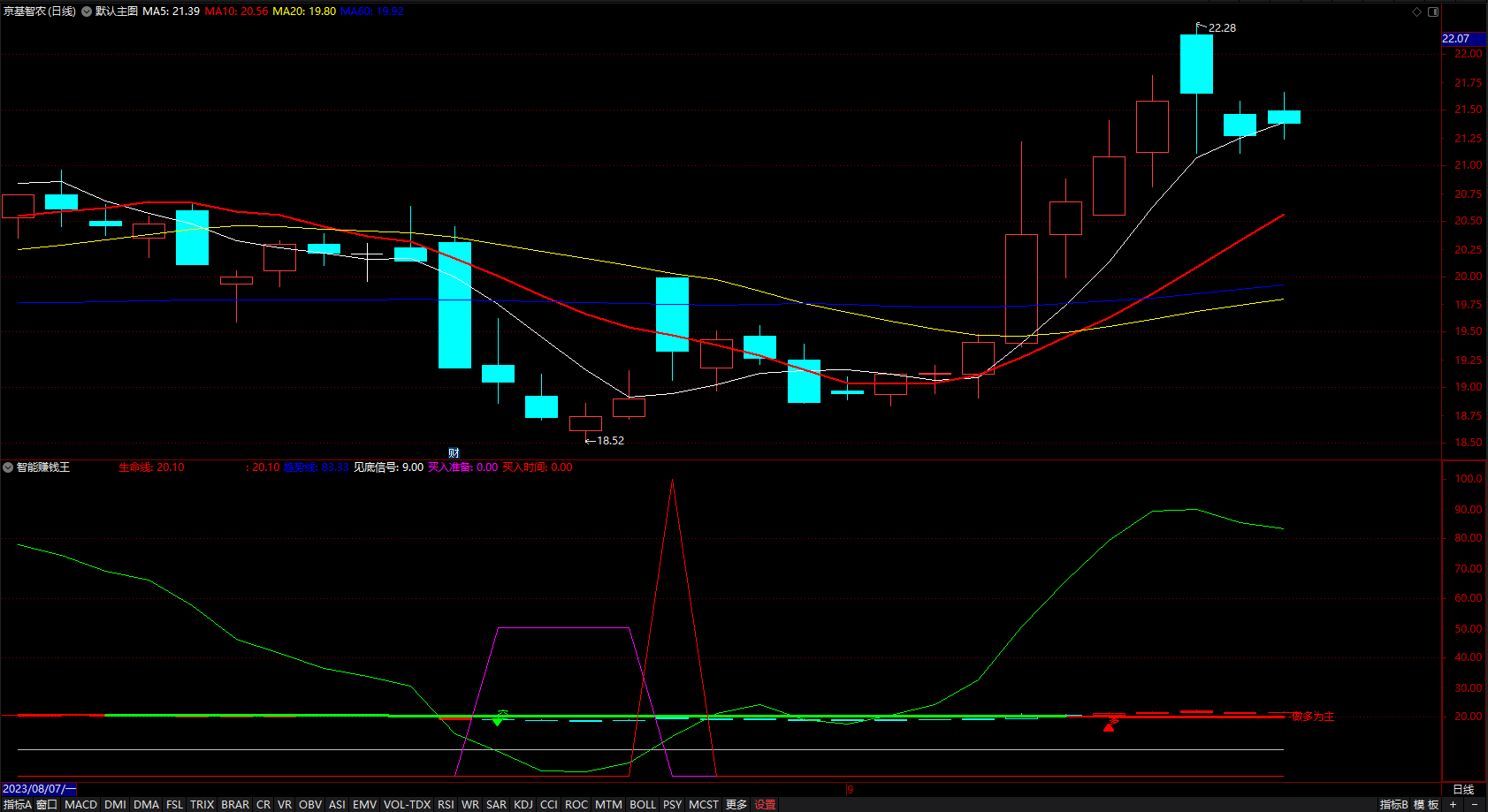 通达信买卖点智能预警赚钱王指标公式 副图 源码