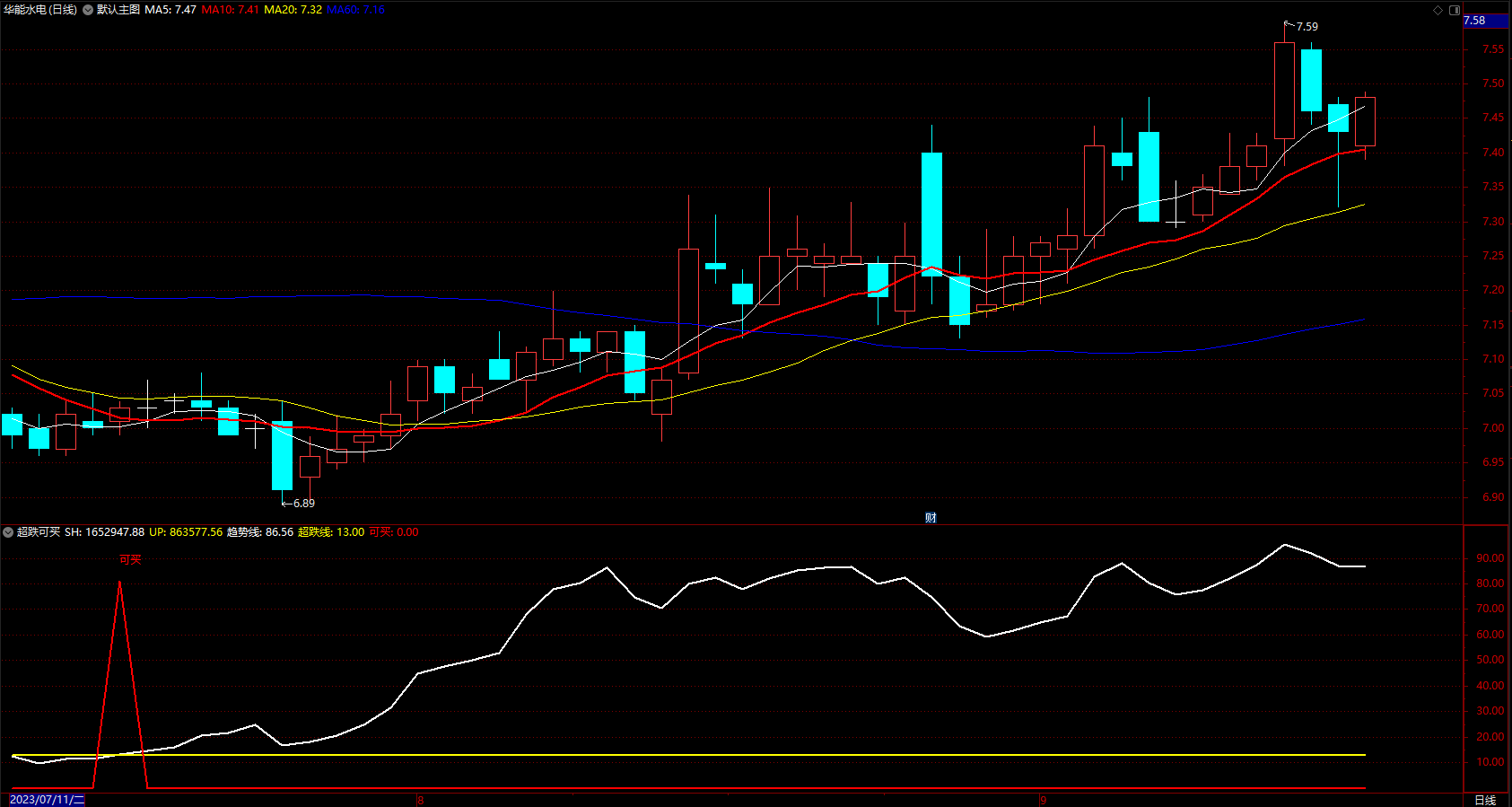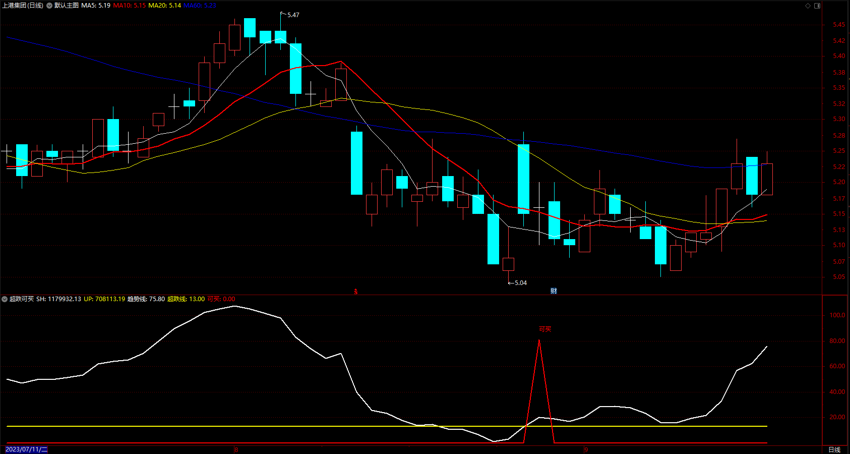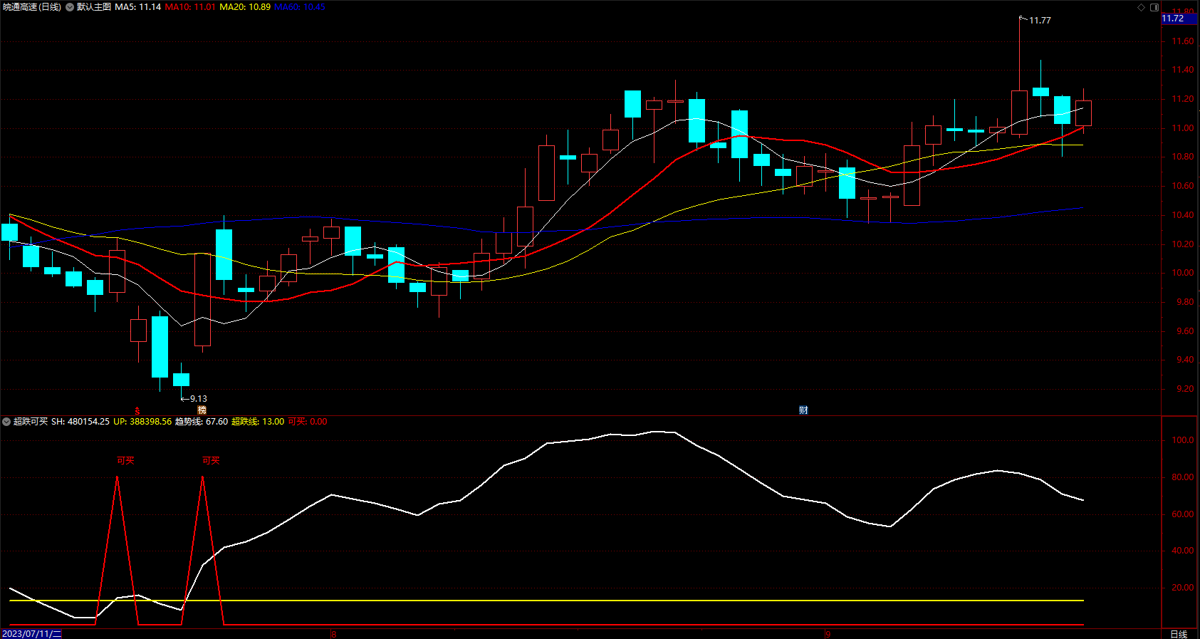 1.趋势线要在超跌线下启动。