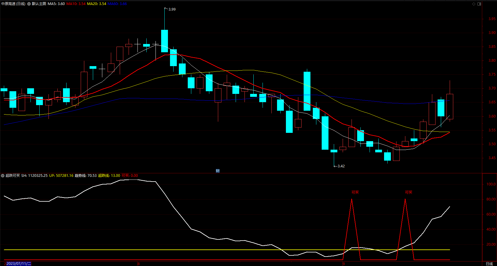 2.单日振幅小、波幅不大的个股,出现可买信号不选。
