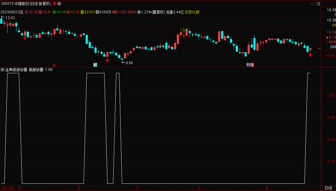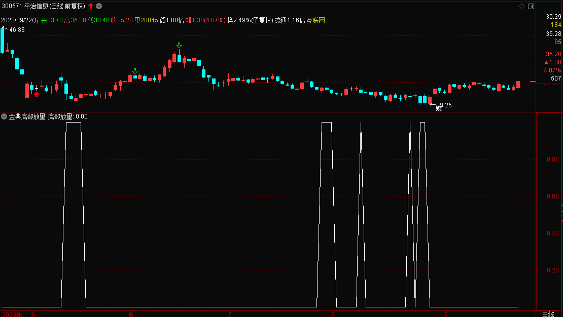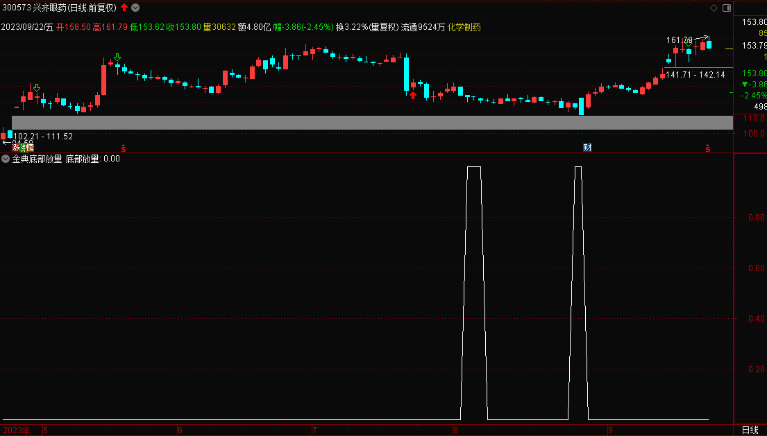 (金典通达信底部放量选股副图指标源码,祝股市长虹!)