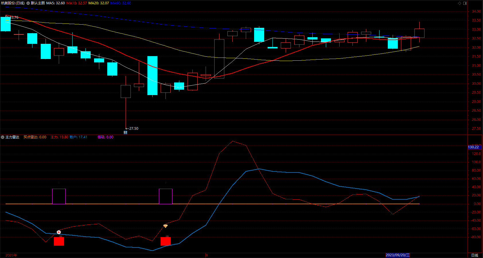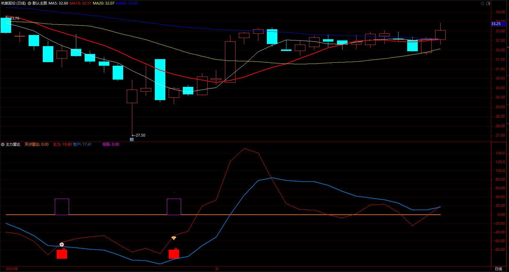通达信庄家主力筹码指标公式 主升买点雷达 副图 无未来 源码