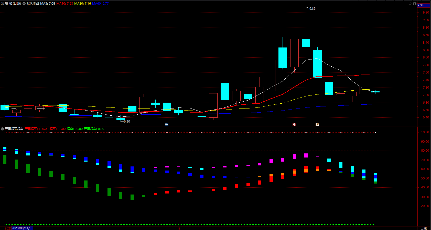 超买超卖指标公式 通达信波段极品短线 副图 无未来 源码