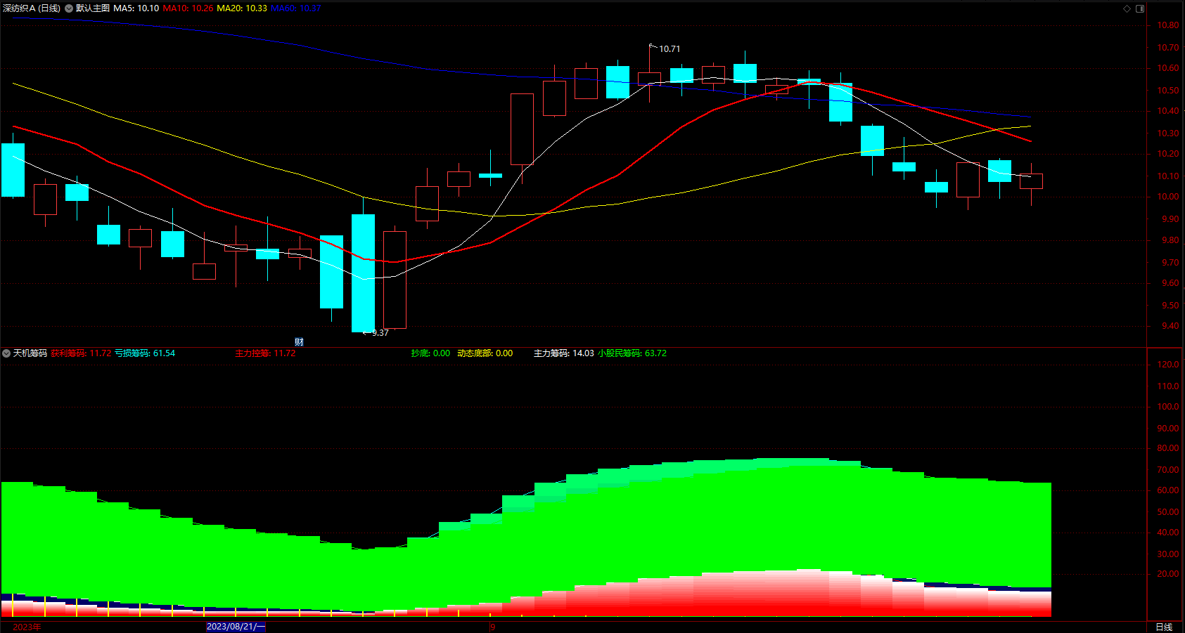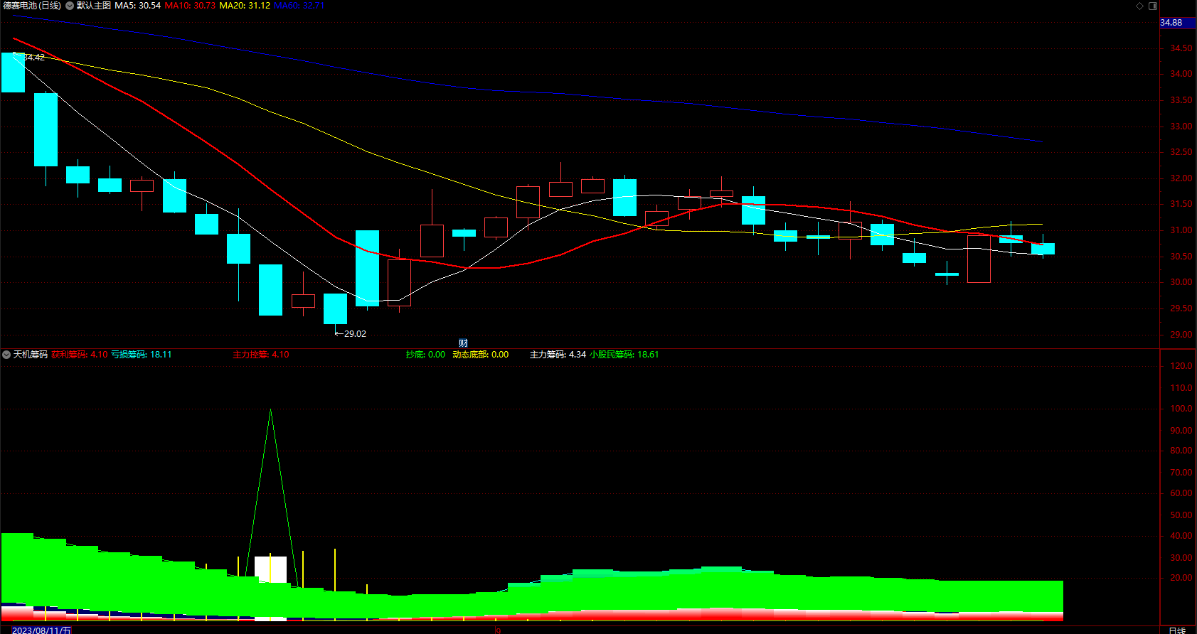 主力筹码:EMA(WINNER(CLOSE)*70,10),COLORWHITE;