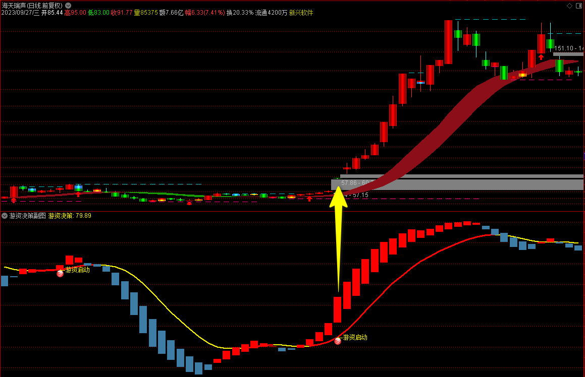 (通达信《游资决策》副图+选股指标,底部启动辅助决策专家!源码分享)