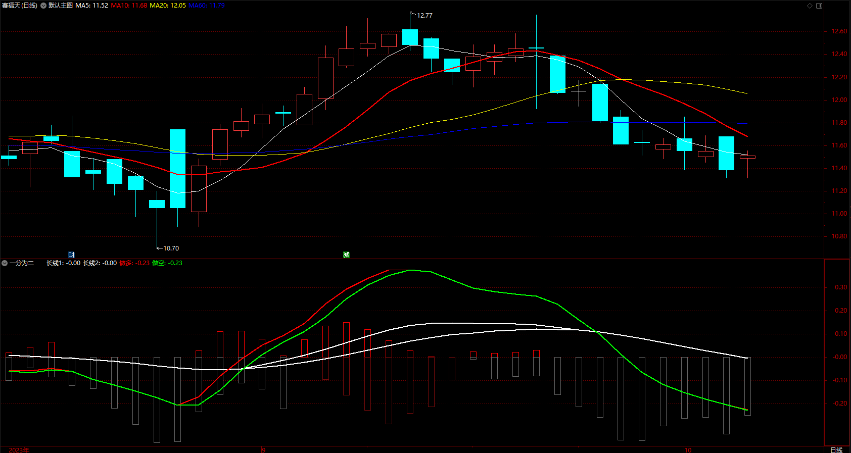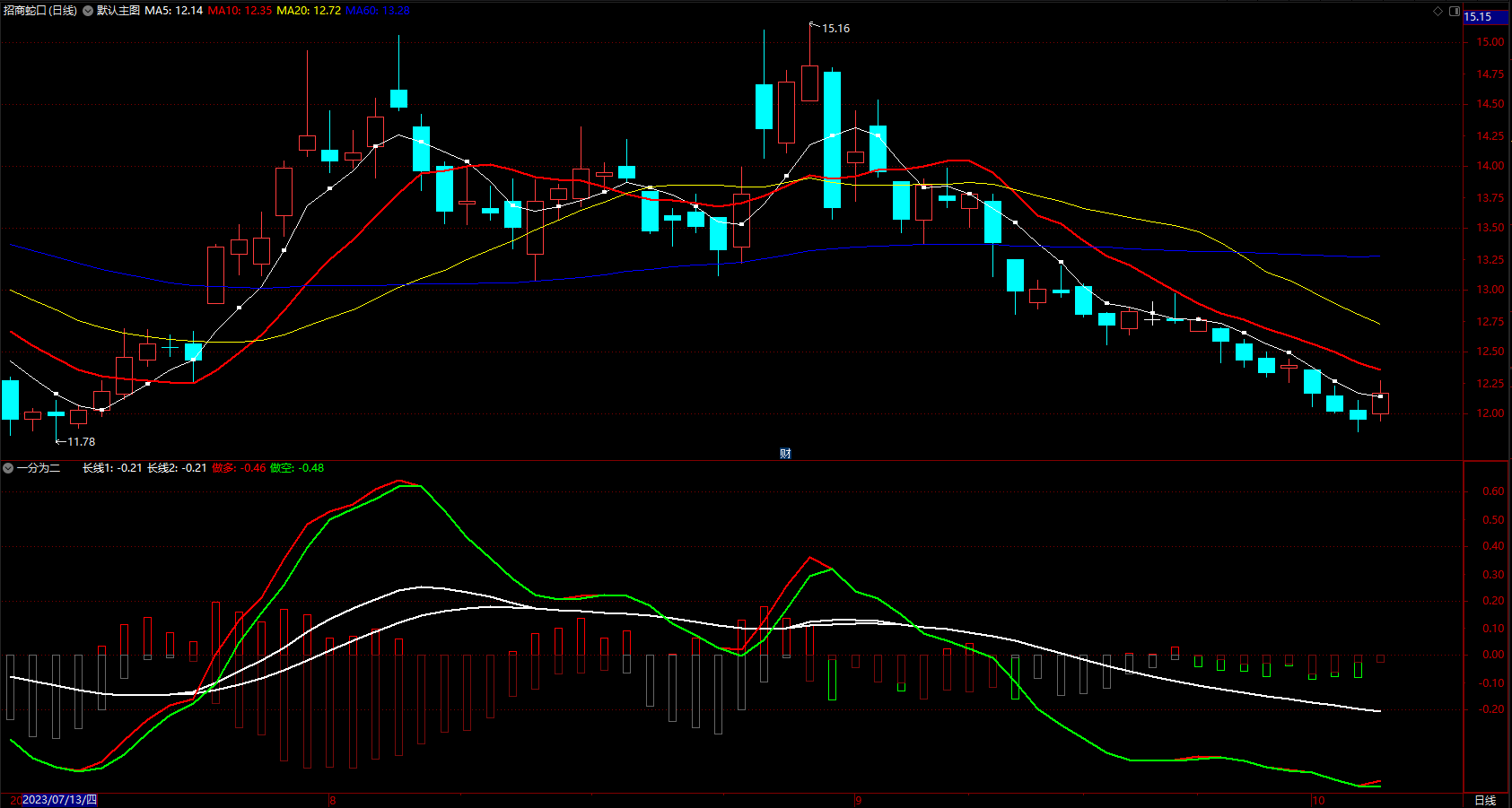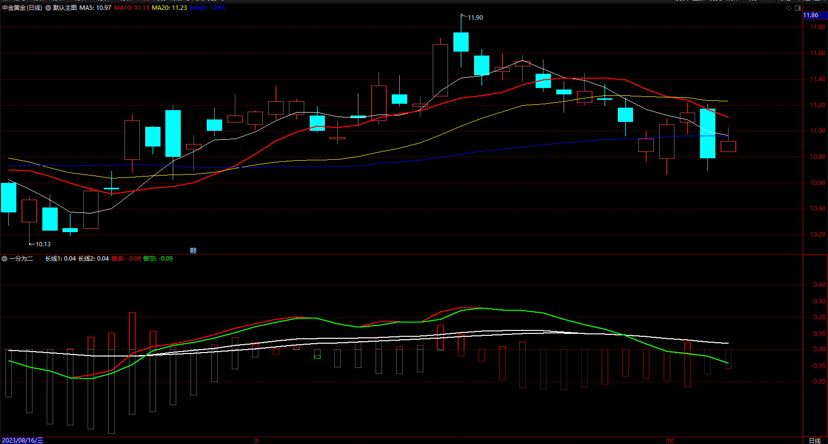 一、线条:做多 (红) 做空(绿)、 长线1(白) 长线2(黄),请重点体会一分为二 当两线合一时趋势已经变了;