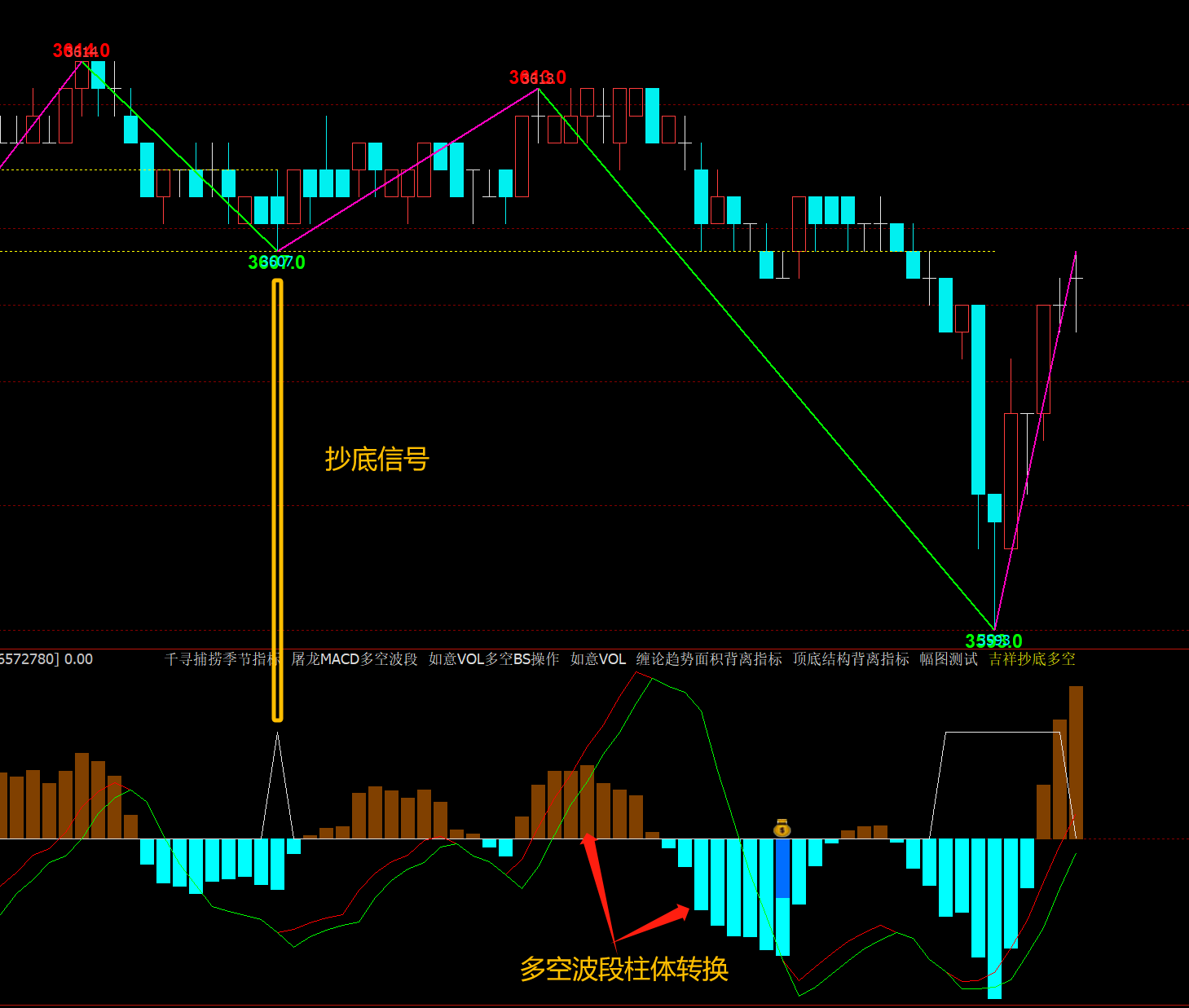 (文华财经软件期货多空波段交易策略日内短线抄底买涨买跌指标公式)