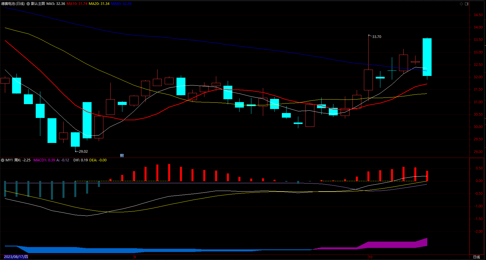 一个太普通的MACD指标引用了周线数据。色带是周MACD,其他显示是平常的日线MACD。操作选票时只看周MACD红色多头的,再看看是否有题材风口点火,以日线MACD刚变红,DiF线零上为进场点。坚持下去正收益没问题的。看长做短安全第一!