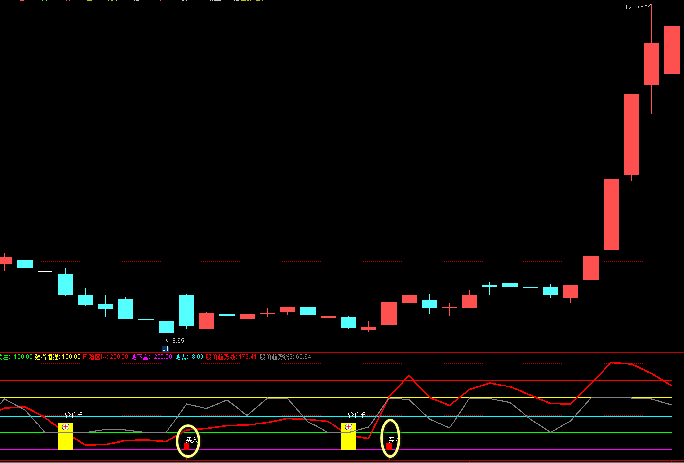 注意“管住手”信号,尤其当红色的股价趋势线超过“开始关注”信号线时,这是进一步关注的良好时机。