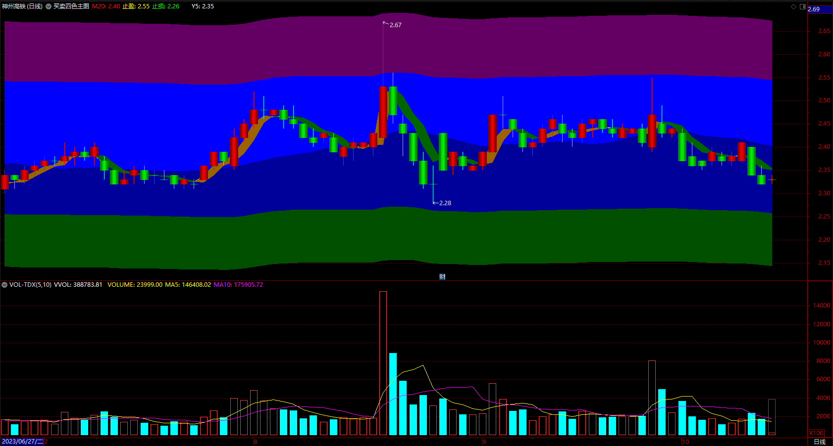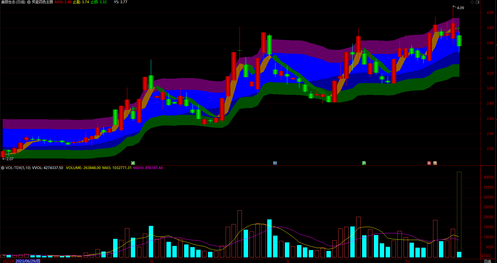 买卖分水岭 通达信彩柱强弱分界点指标公式 副图 无未来 源码