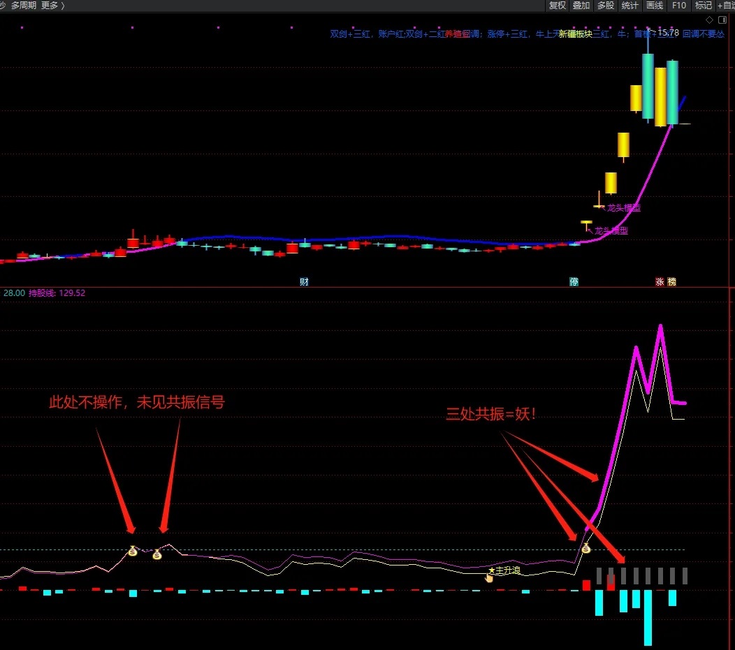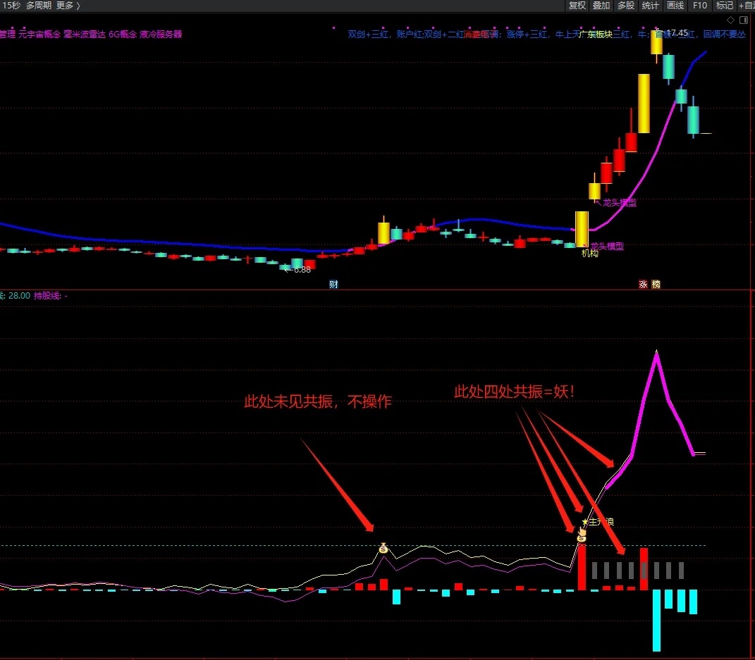 【新版双紫擒龙】副图选股指标强势起爆+双紫擒龙+动能二号+共振追涨 独创三紫一红选股