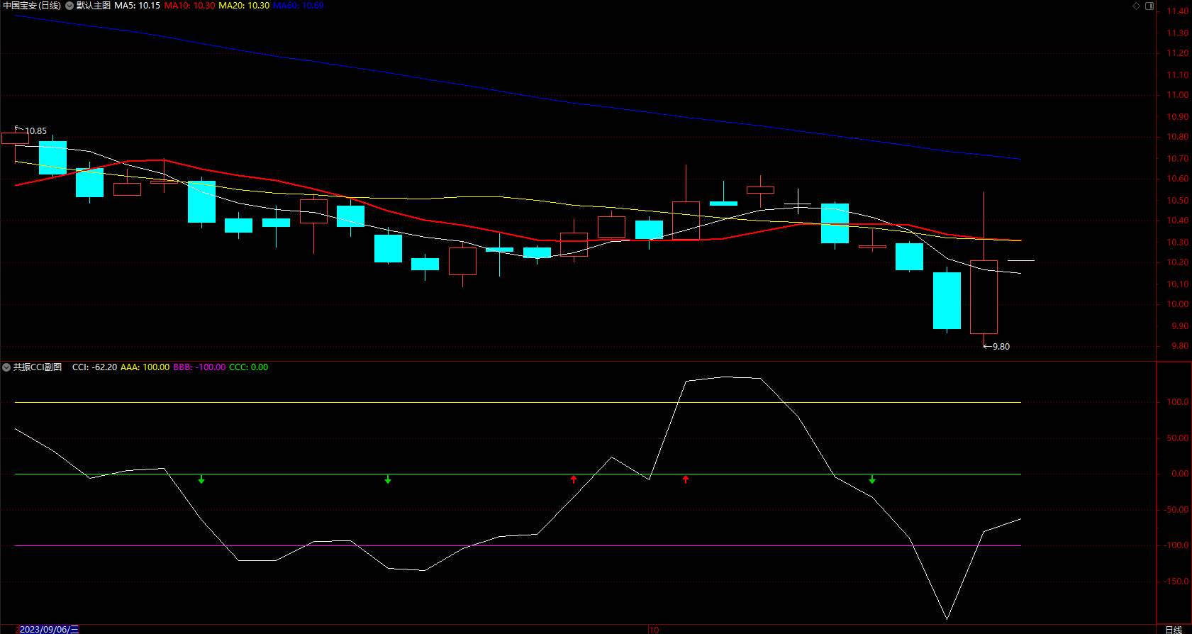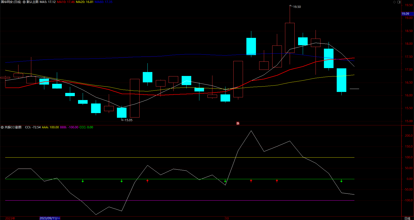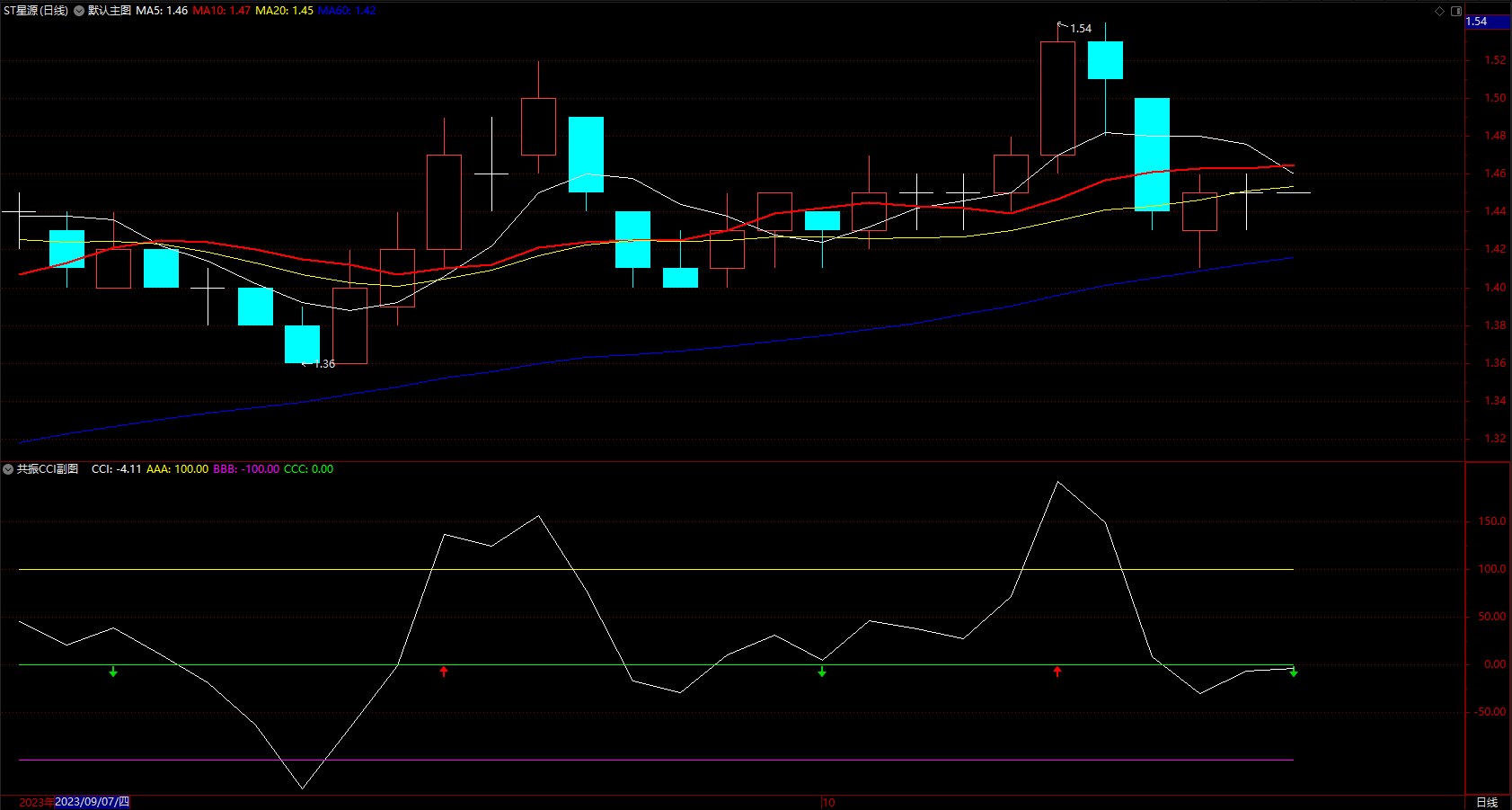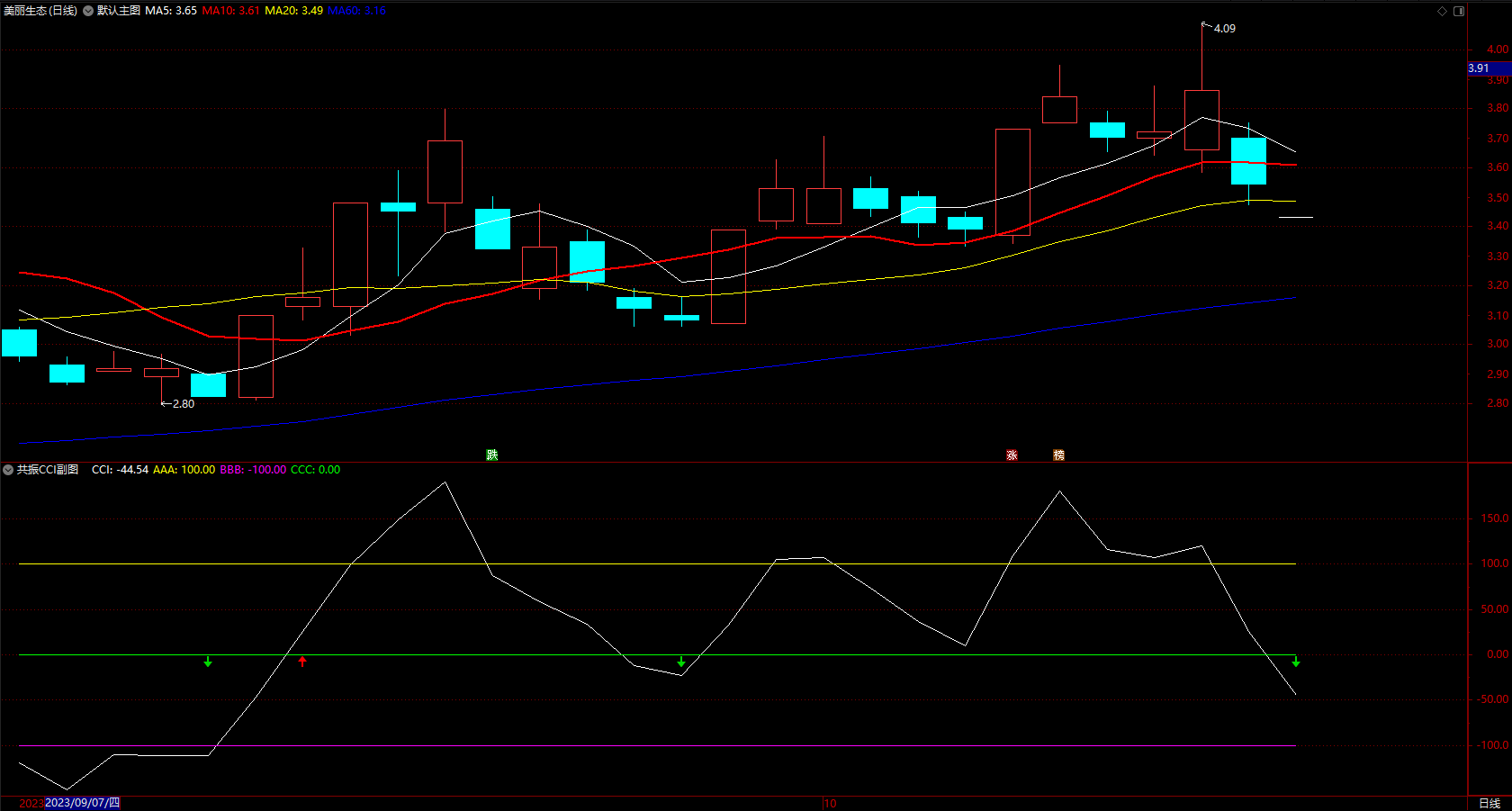 抓住短线动能再组合超短线CCI指标 通达信短线趋势箭头公式 副图 无未来 源码