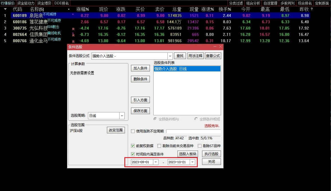 (【强势介入】通达信强势介入副图选股指标,源码分享)