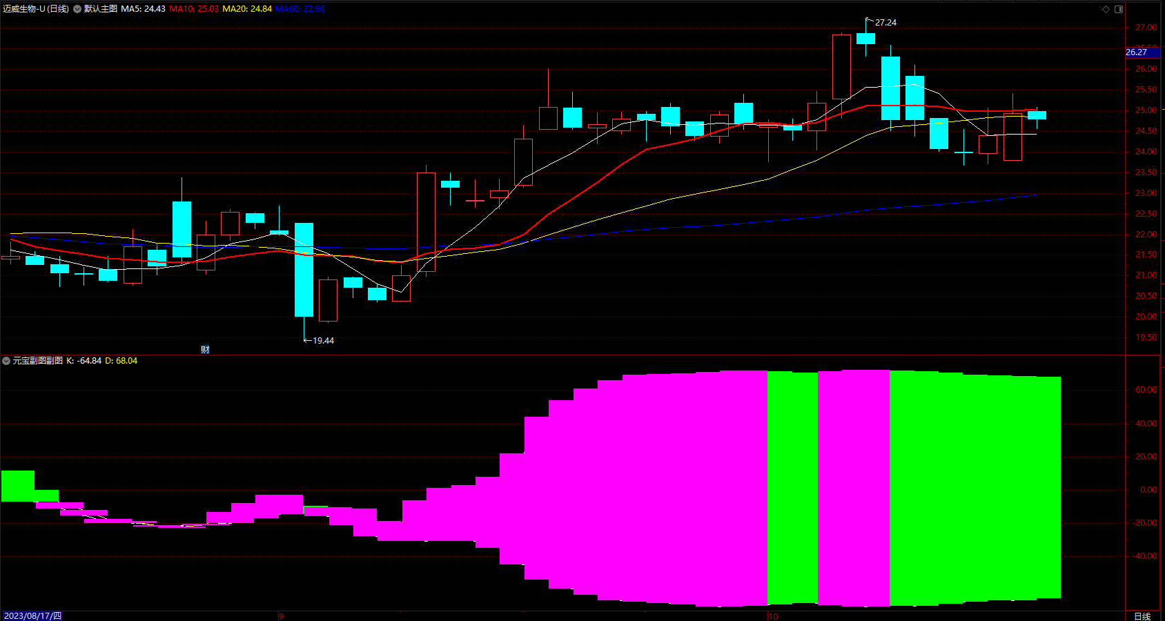 通达信好用的元宝多空趋势副图指标公式 源码