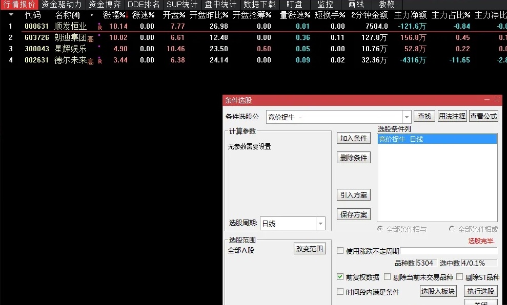 (通达信《竞价捉牛》近期挖掘顺发恒业、真视通(源码、副图、选股))