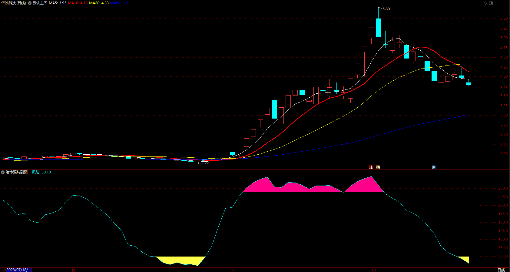 3、波段的顶,在进入风险区时,就要高度警惕,在风险红色区结束时要考虑当前升势已经结束!