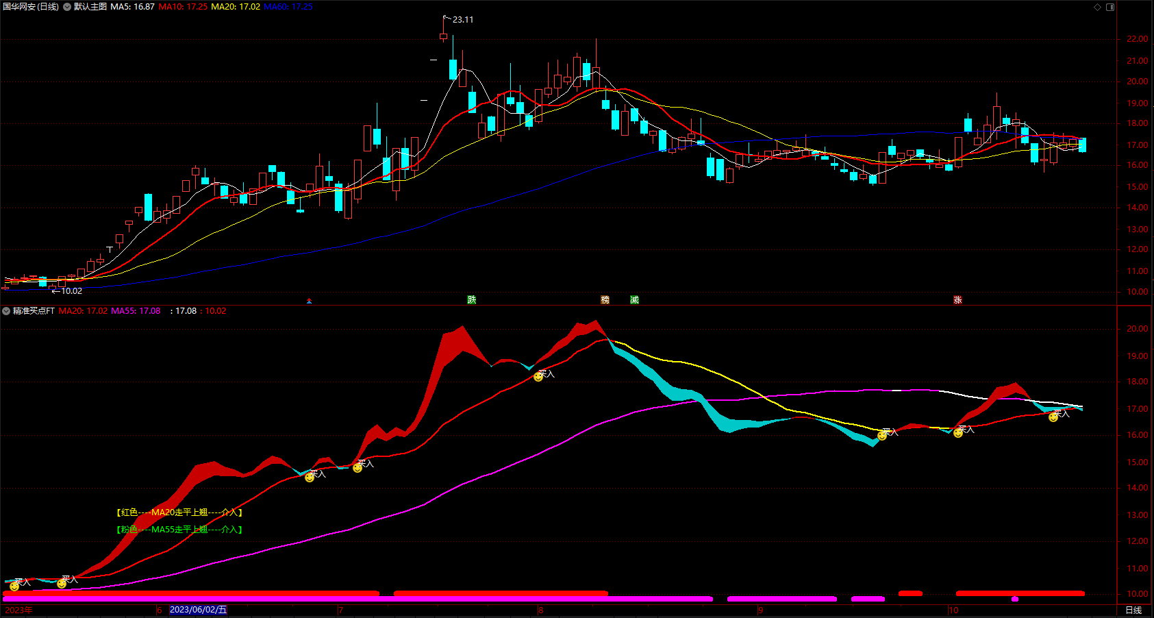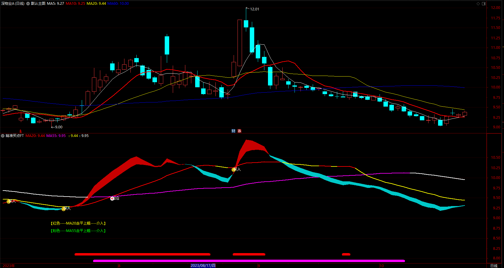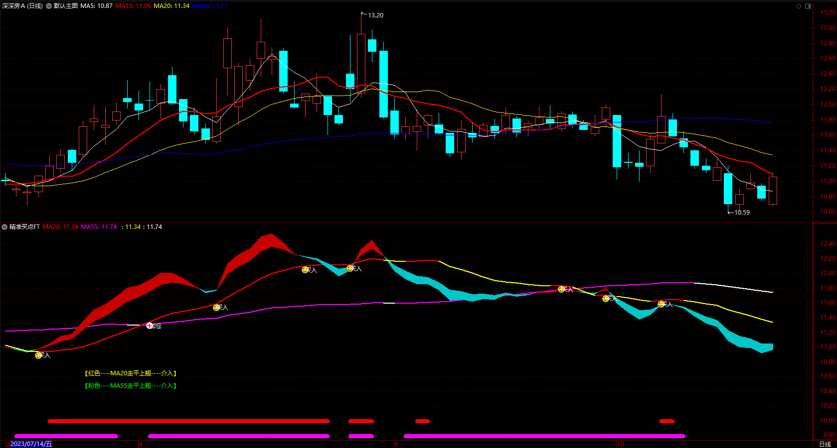 红色----MA20走平上翘----介入