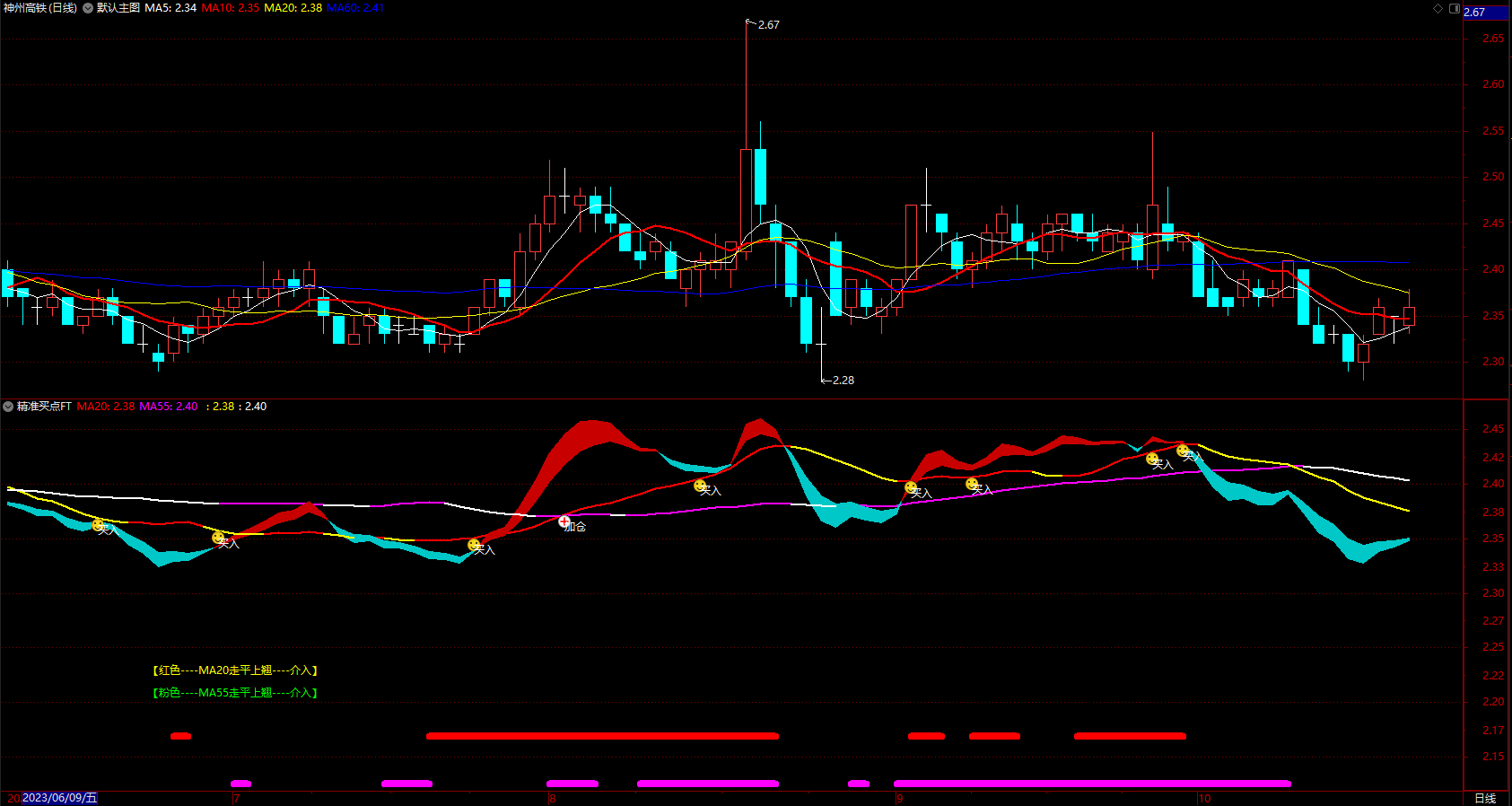 粉色----MA55走平上翘----介入