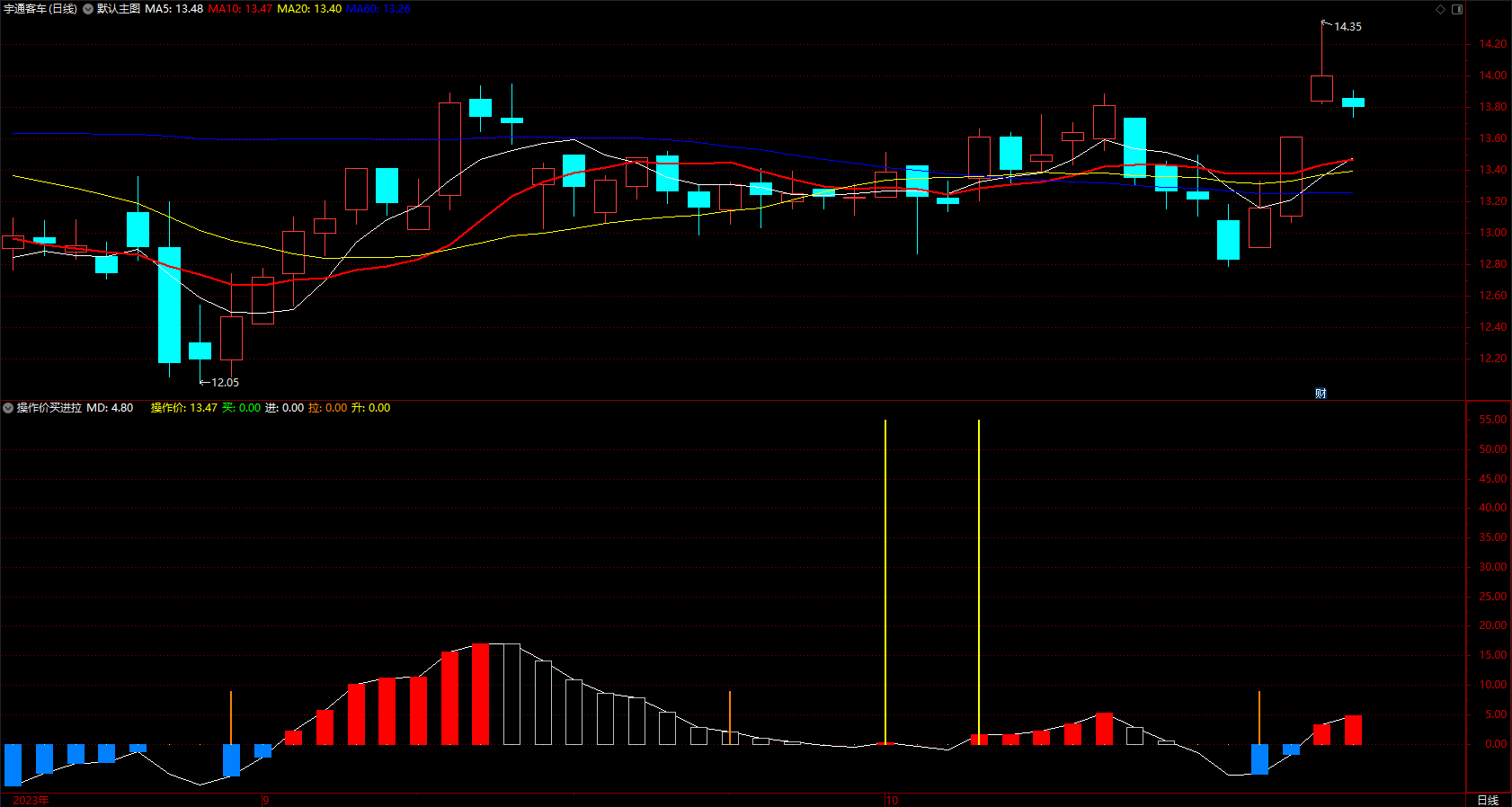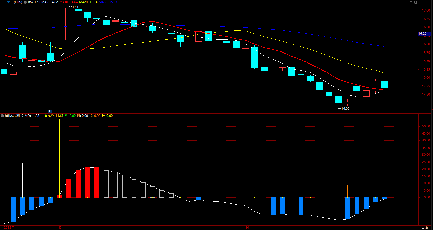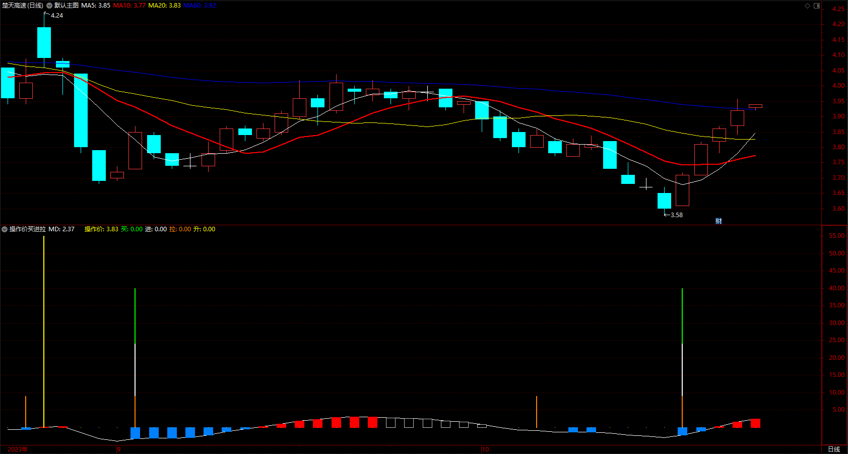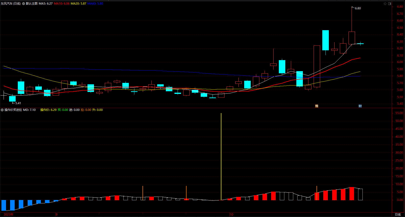 升:(CROSS(DIF,DEA) AND CROSS(MD,0) AND CROSS(C,操作价) AND 红柱)*55,COLOR00FFFF,STICK,LINETHICK2;