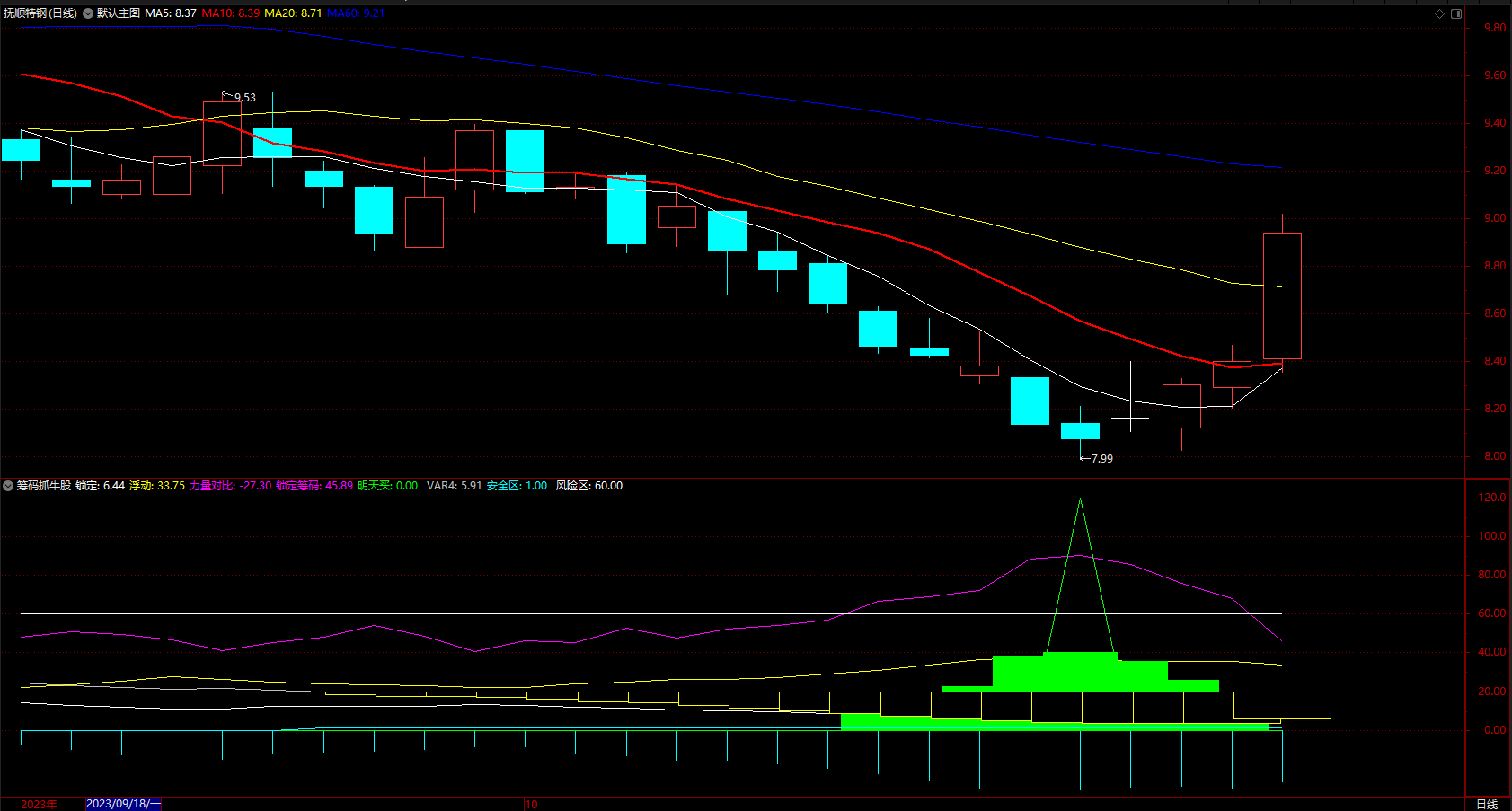 筹码抓牛股选股指标公式 通达信筹码锁定区安全买 副图 源码