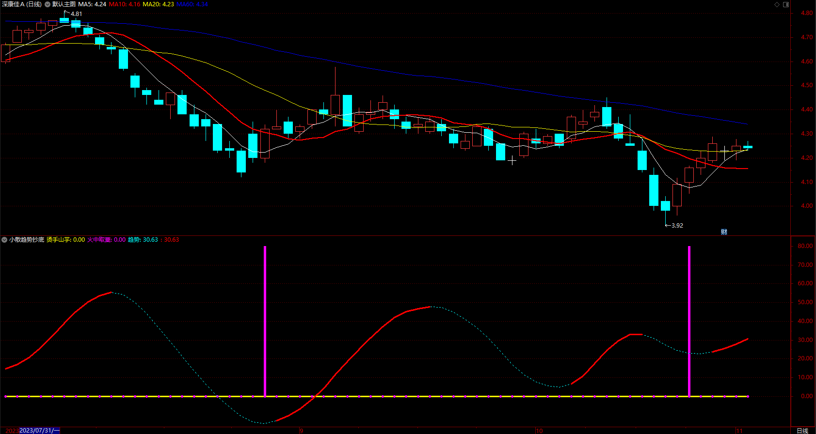 (最强逃顶抄底指标公式 通达信小散趋势柱子提示买进 副图 无未来 源码 )