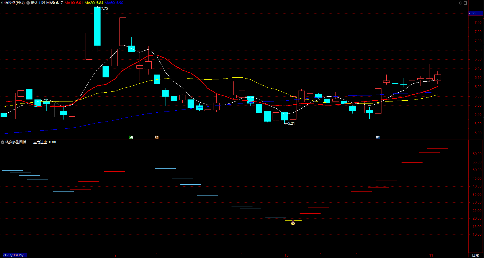 (通达信钱袋子公式 简单好用的底顶和波段炒股指标 副图 源码 )