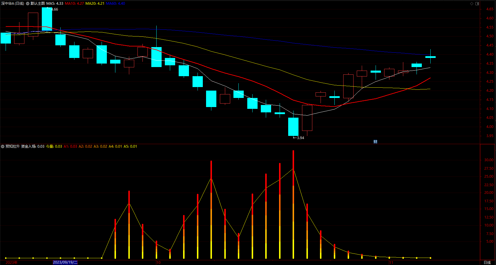 A4:IF(资金入场>0,今量*0.4,0) ,STICK,LINETHICK5,COLOR00CCFF;