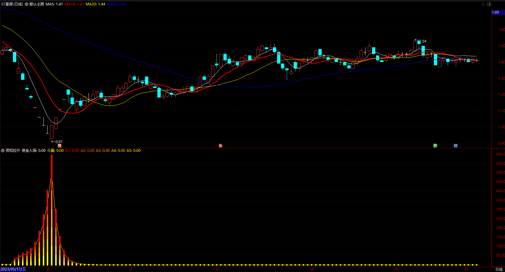 A1:IF(资金入场>0,今量*1.2,0),STICK,LINETHICK5, COLOR0000FF;