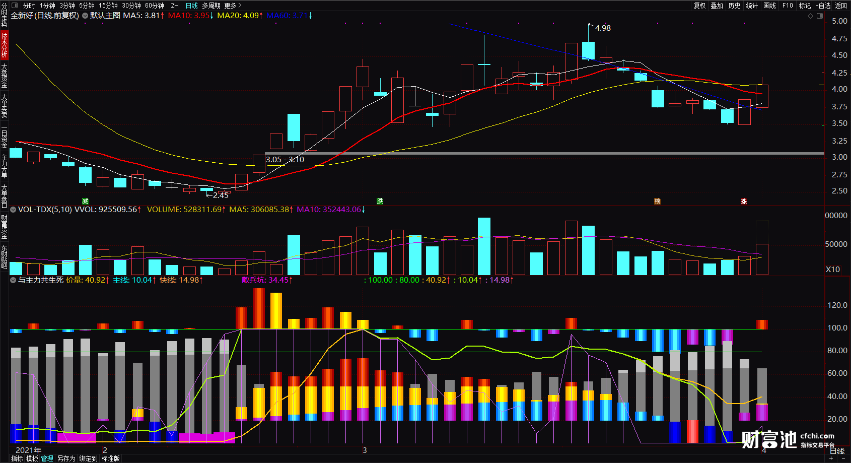 【财富池_量能分析】红粉黄绿四色绝版官方原创核心指,还原个股真实走势(量能判断)
