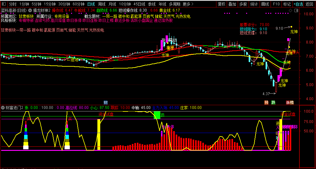 (★通达信短线王★准率97%(★财富进门★)主抓牛妖龙王,万能指标,随意组合搭配)