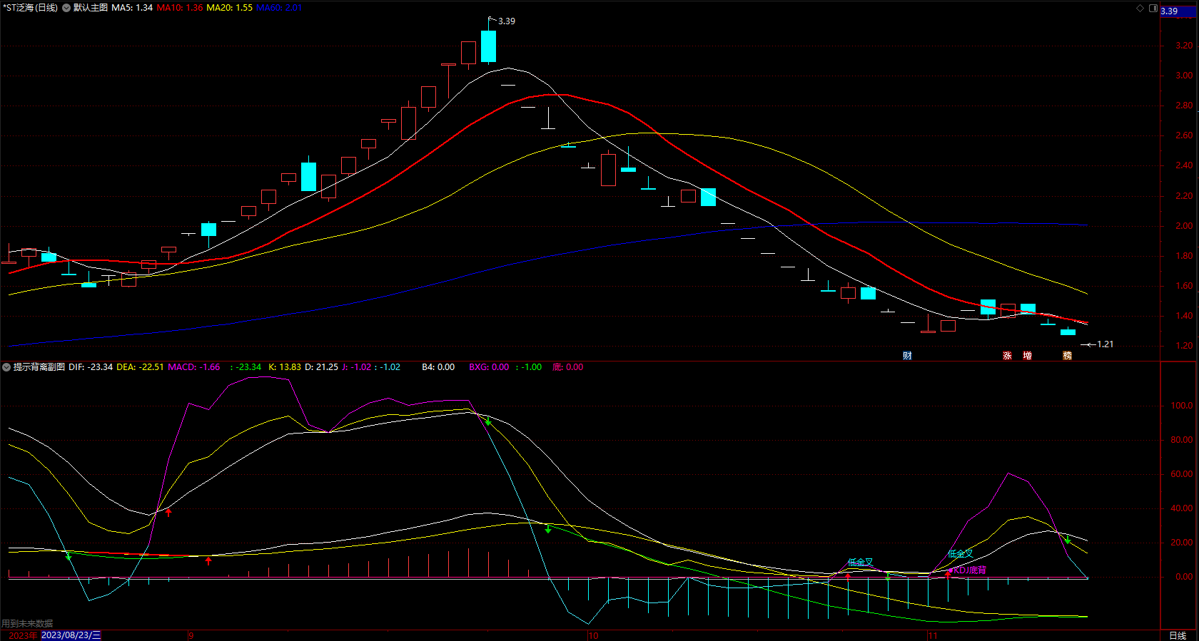 DRAWTEXT(MDJ,DEA-0.3,'低金叉'),COLORGREEN;