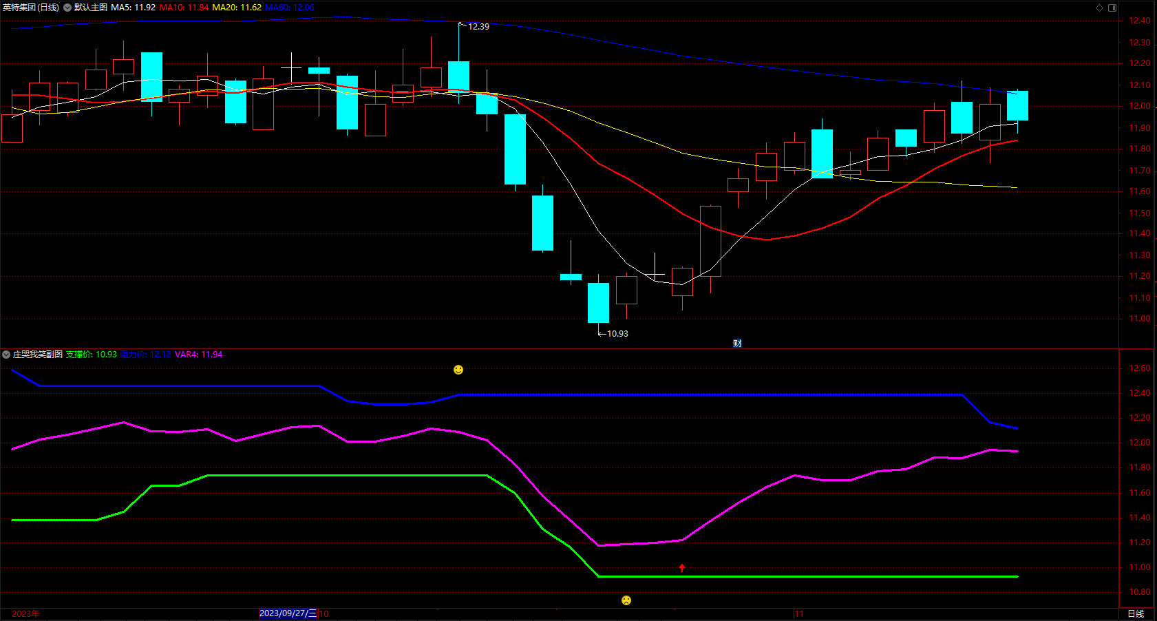 (准确买点 庄哭我笑 通达信追涨时机趋势线买卖指标公式 副图 源码)