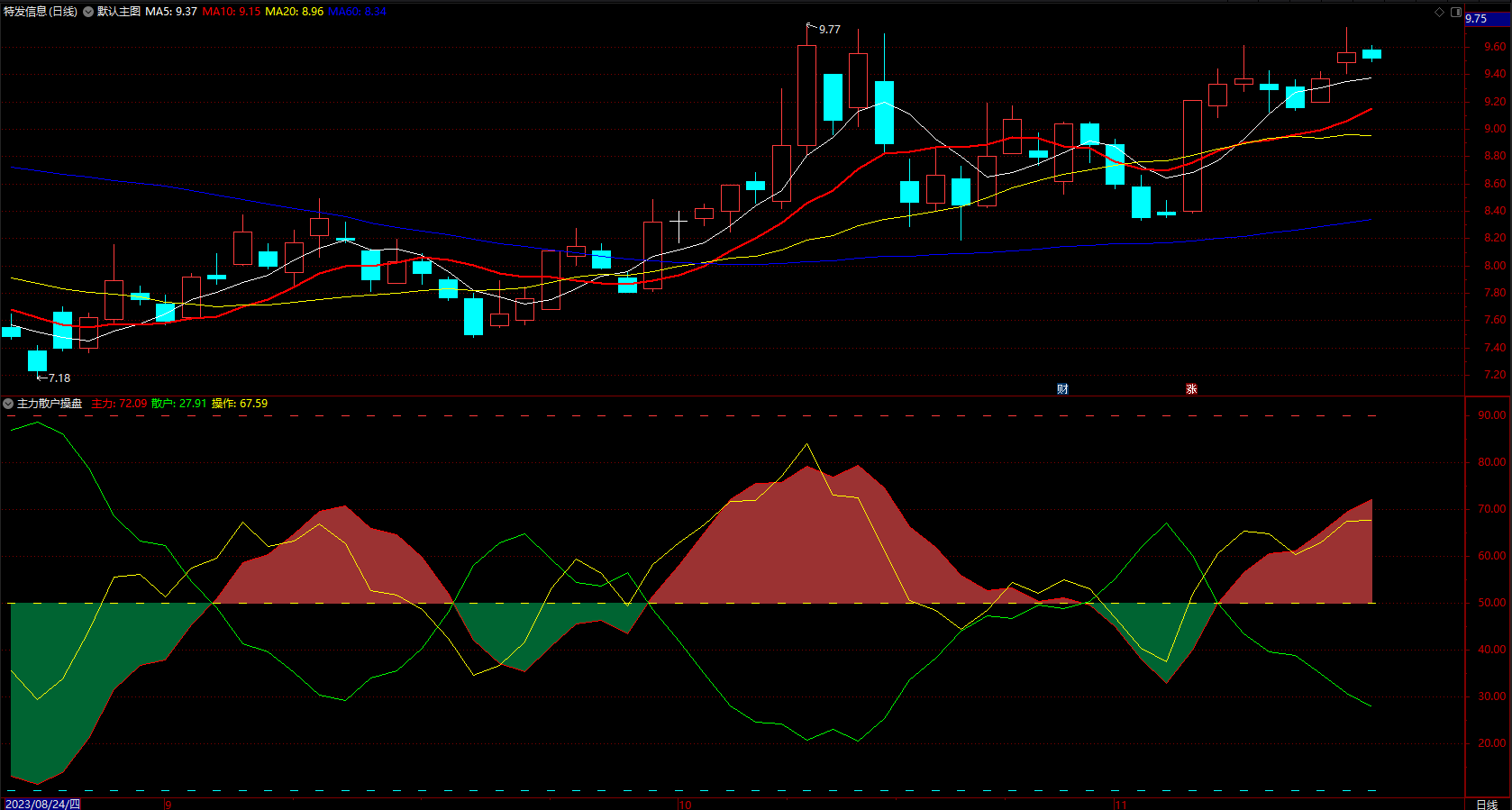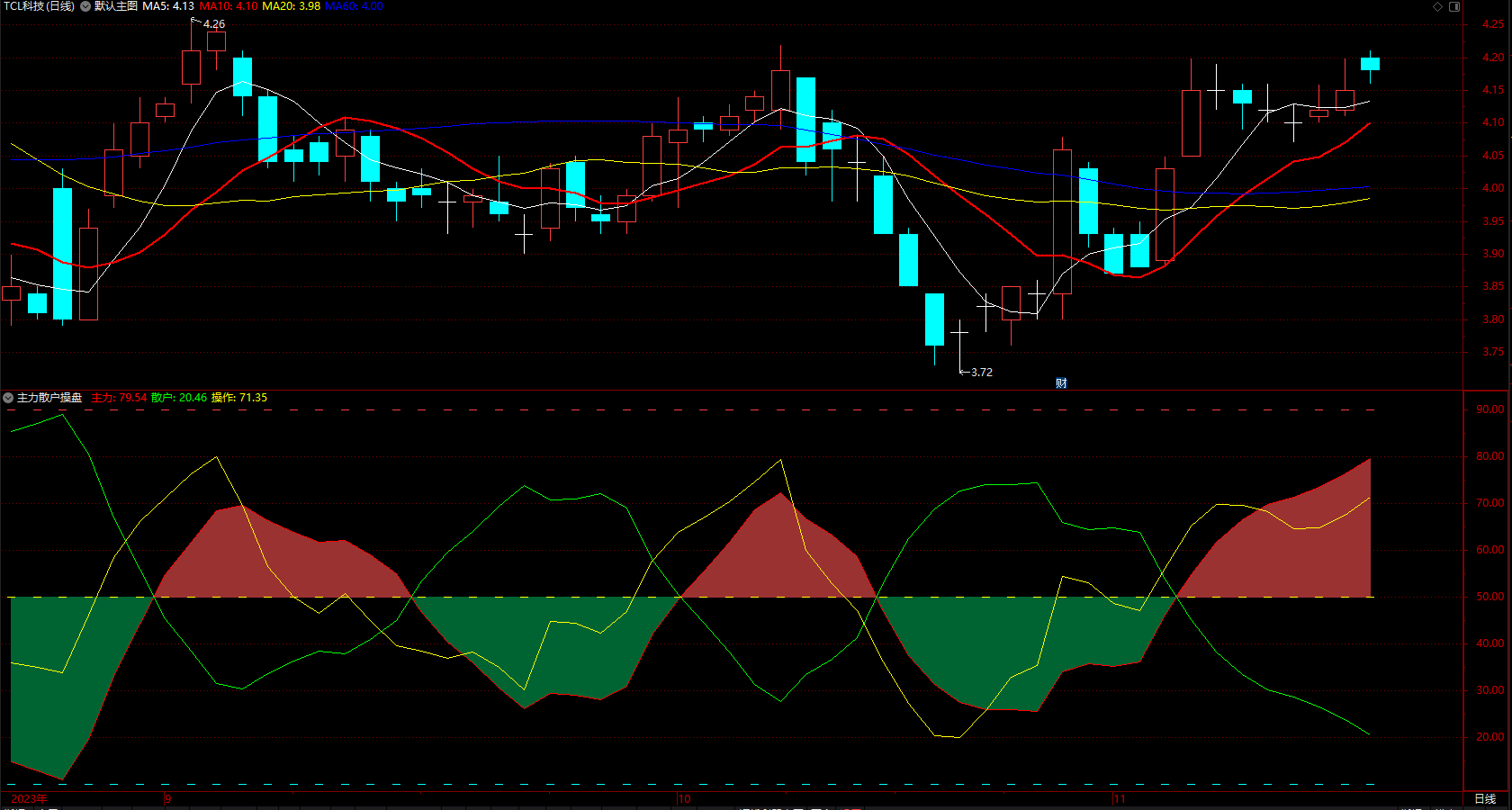 买卖红绿提示指标公式 通达信主力散户操作提示 副图 源码