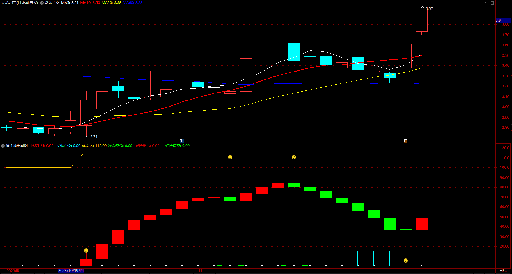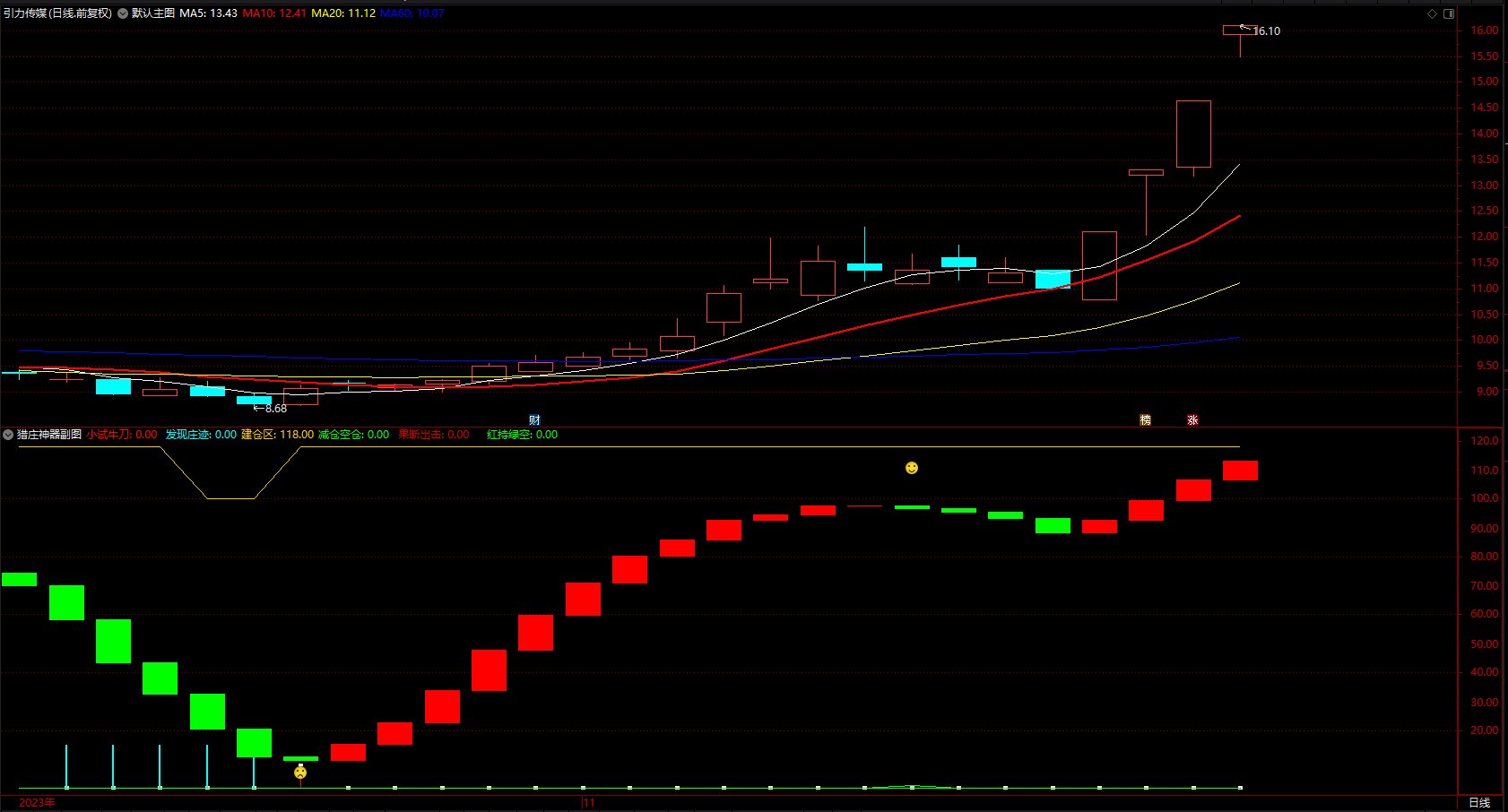 筹码猎庄副图 通达信发现庄迹加减仓 指标公式 无未来 源码