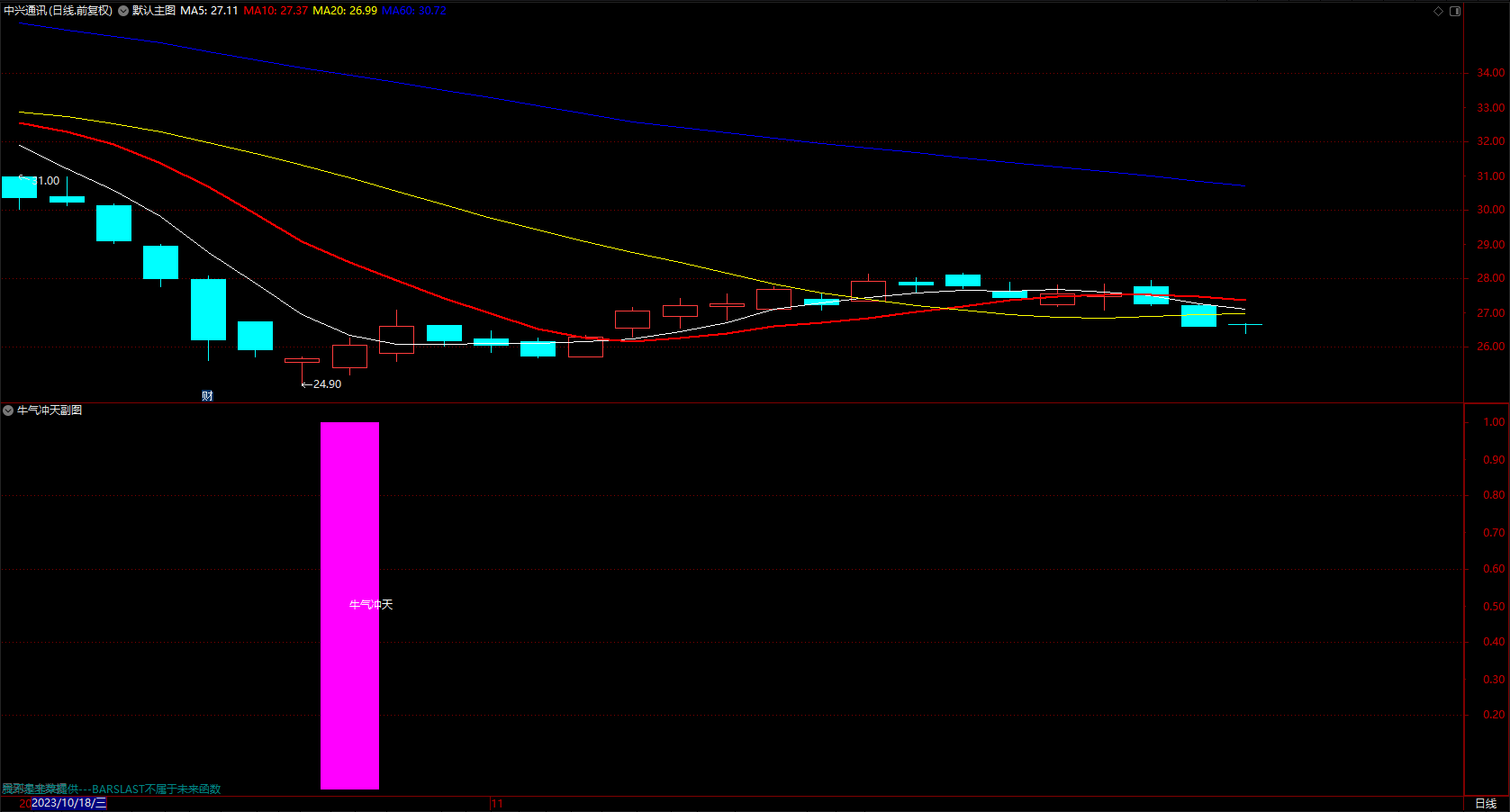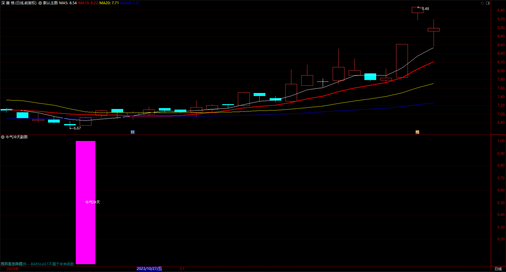牛气冲天选股 公式 通达信机构买入提示指标 副图 无未来 源码