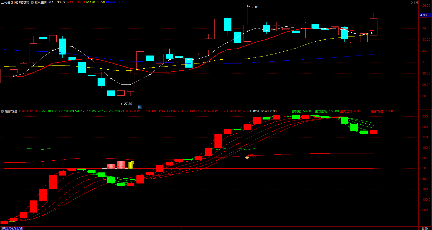 (通达信庄家轨迹指标公式 趋势红绿买卖点 副图 源码 )